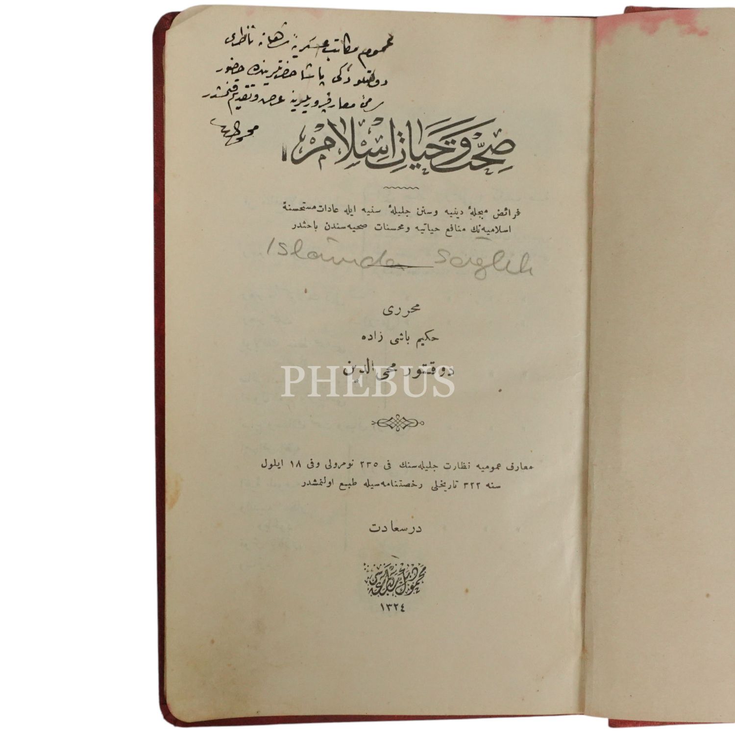 SIHHAT VE HAYAT-I İSLAM, Helkimbaşızade Muhiddin, 1324, Mahmud Bey Matbaası, 104 sayfa, 12x18 cm...