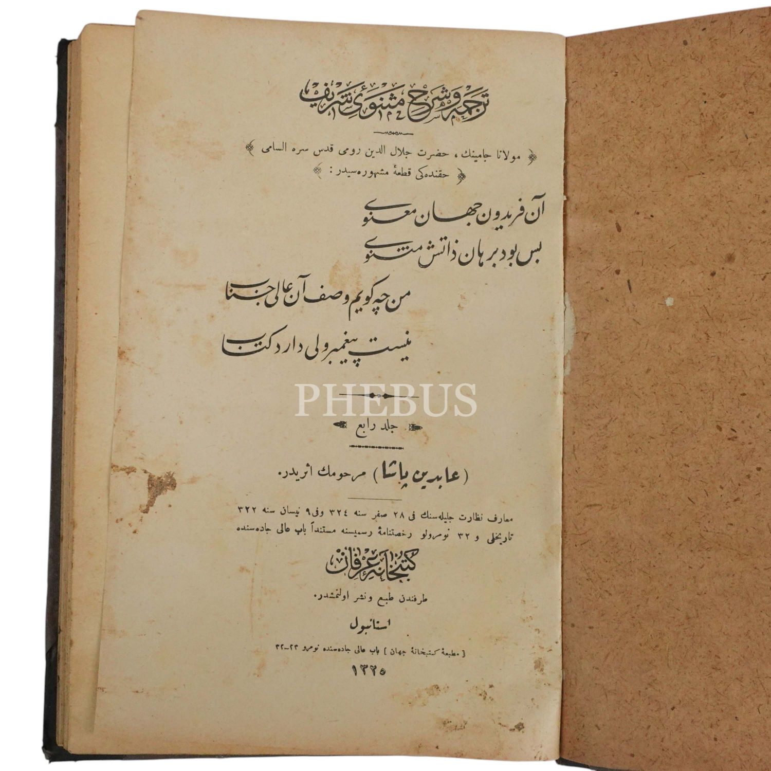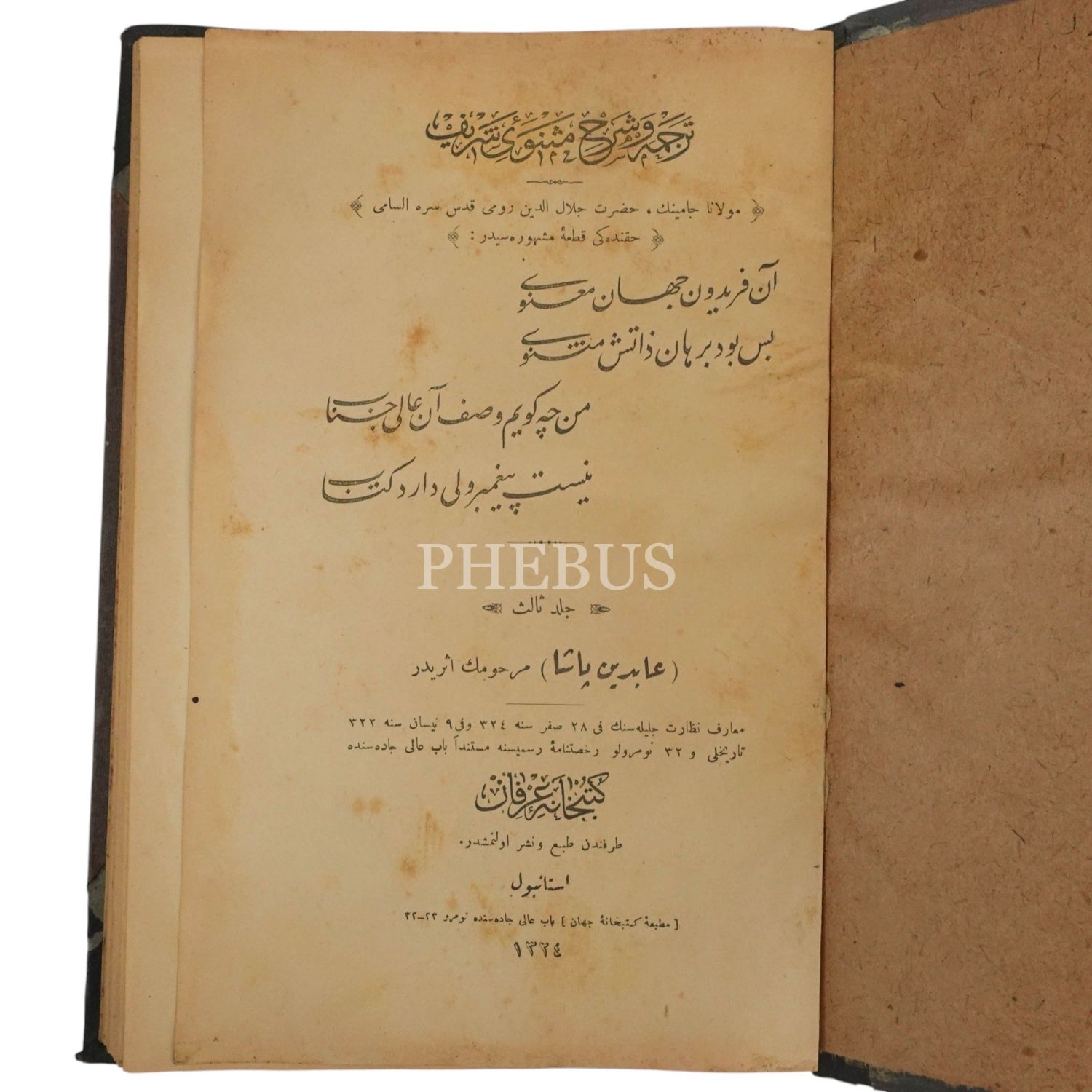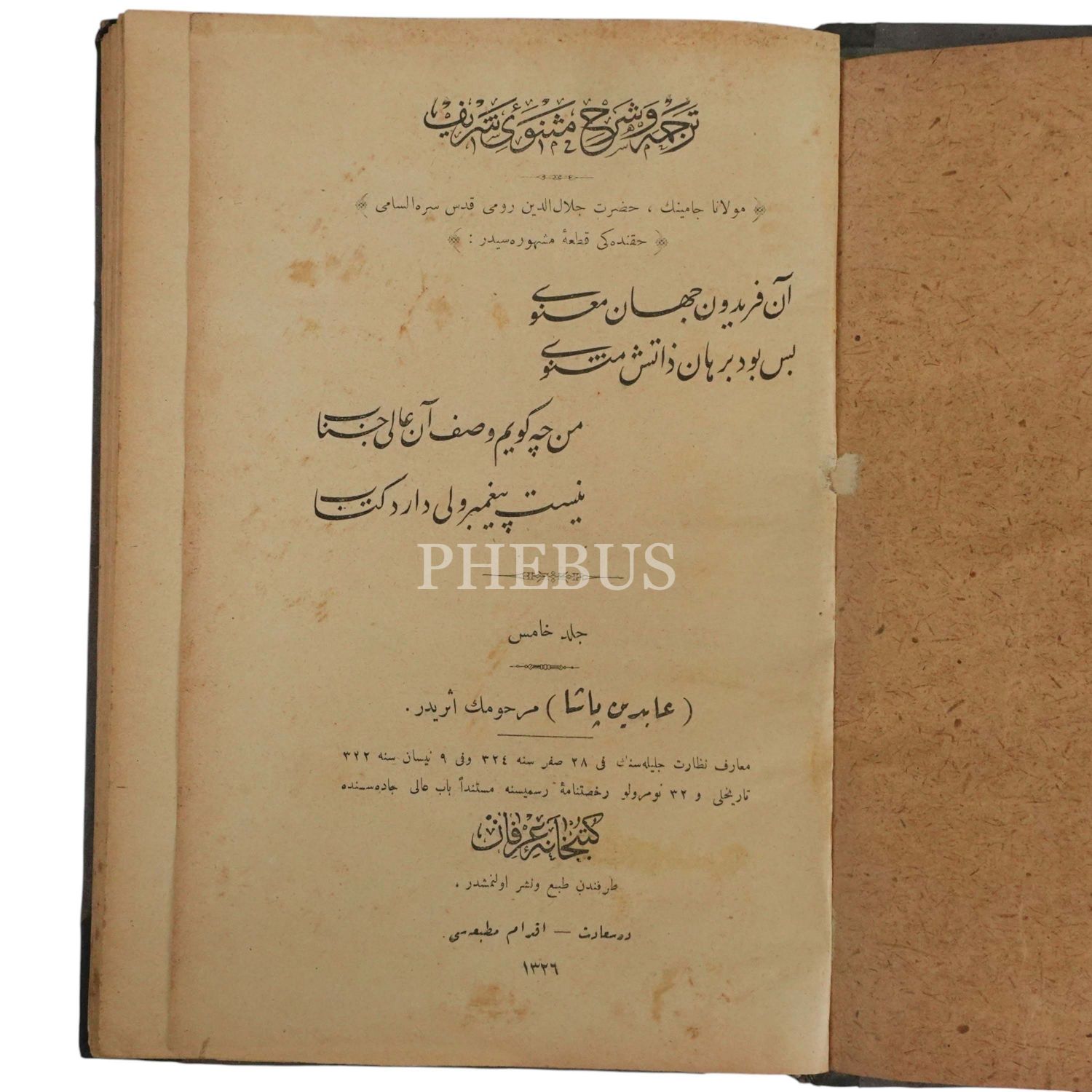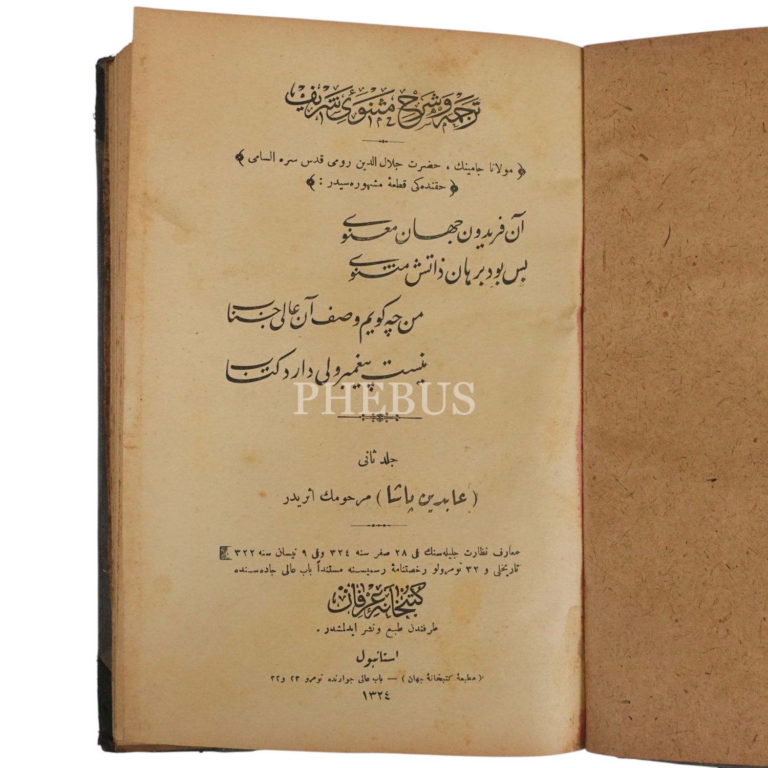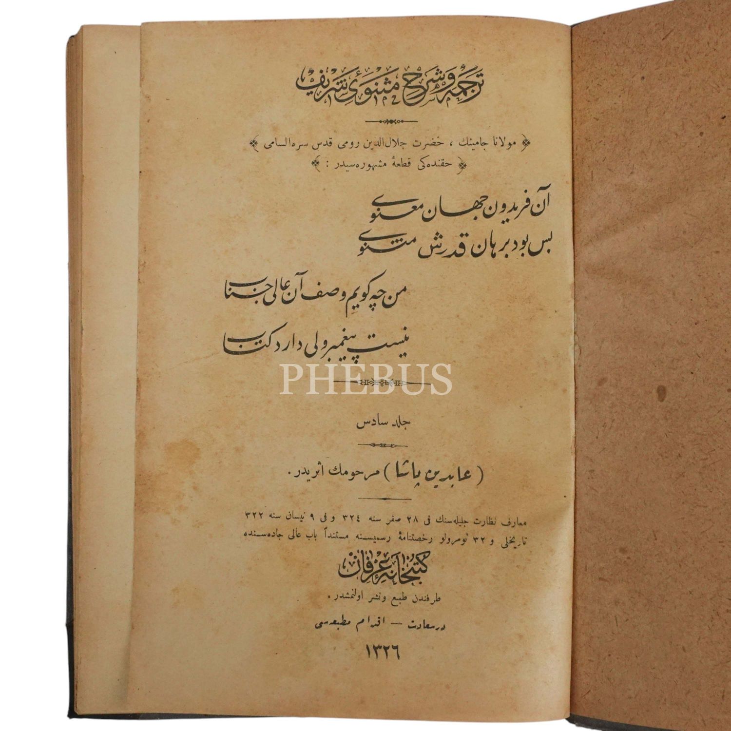 TERCÜME VE ŞERH-İ MESNEVİ-İ ŞERİF (6 cilt takım), Mevlana Celaleddin-i Rumi, (çeviren: Abidin Paşa), 1324-1326, İkdam Matbaası, 17x24 cm...