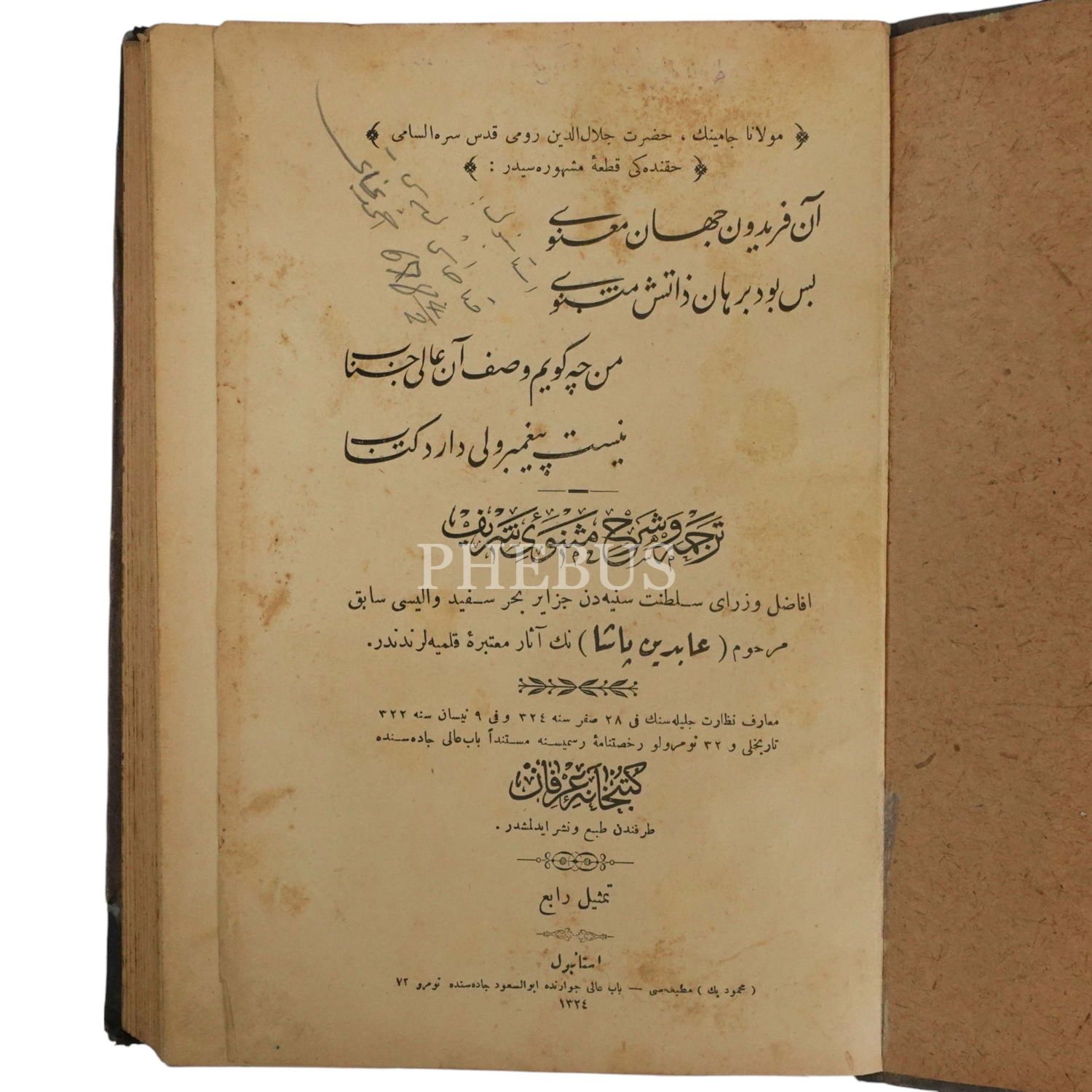 Mevleviliğin kurucusu ve Türk ve İslam tasavvufi tarihinin en önemli isimlerinden Mevlana´nın meşhur eseri Mesnevi-i Şerif´inin Abidin Paşa tarafından yapılan Türkçe tercümesi ve şerhidir.
