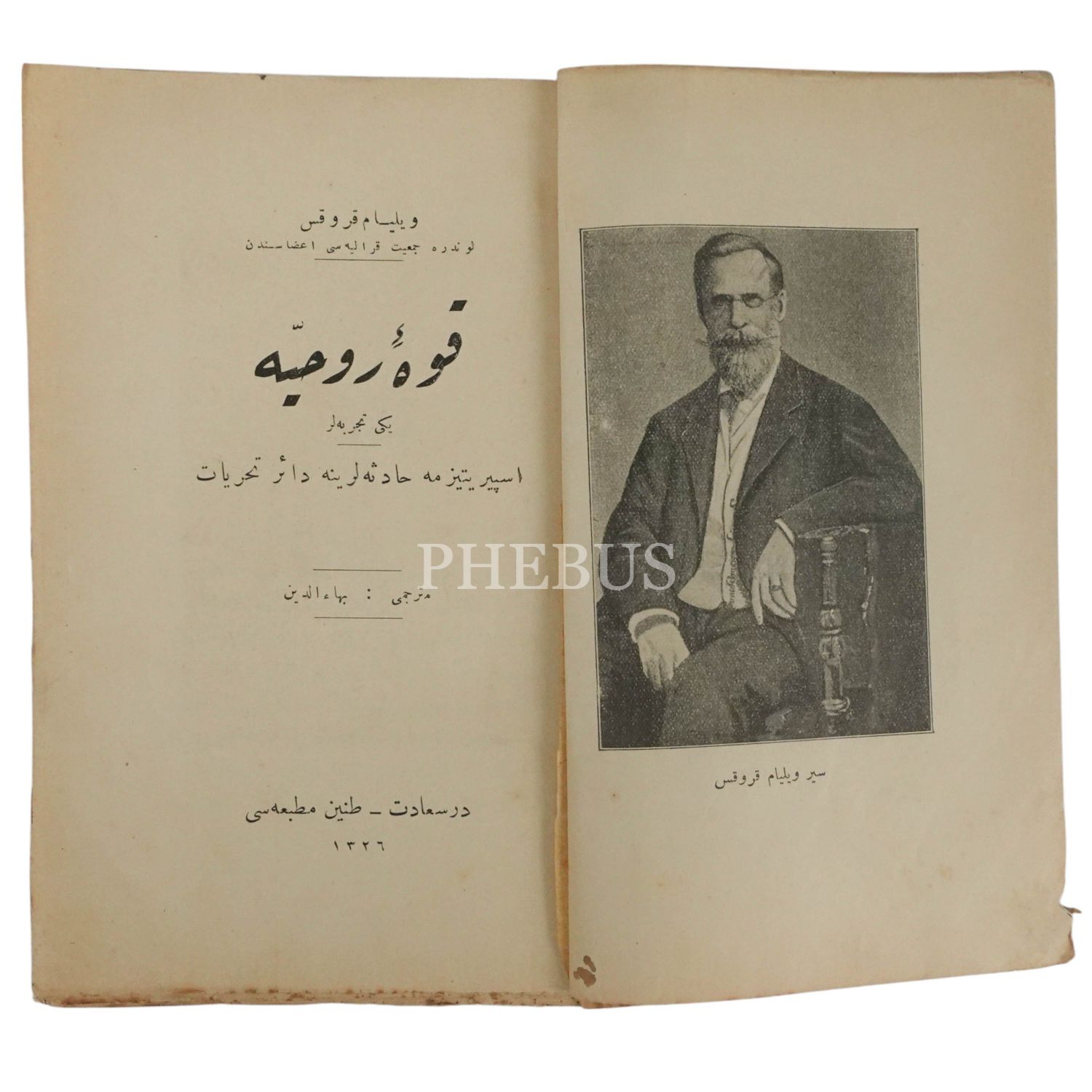 KUVVE-İ RUHİYE, William Crookes, (çeviren: Bahaeddin), 1326, Tanin Matbaası, 106 sayfa, 13x19 cm...