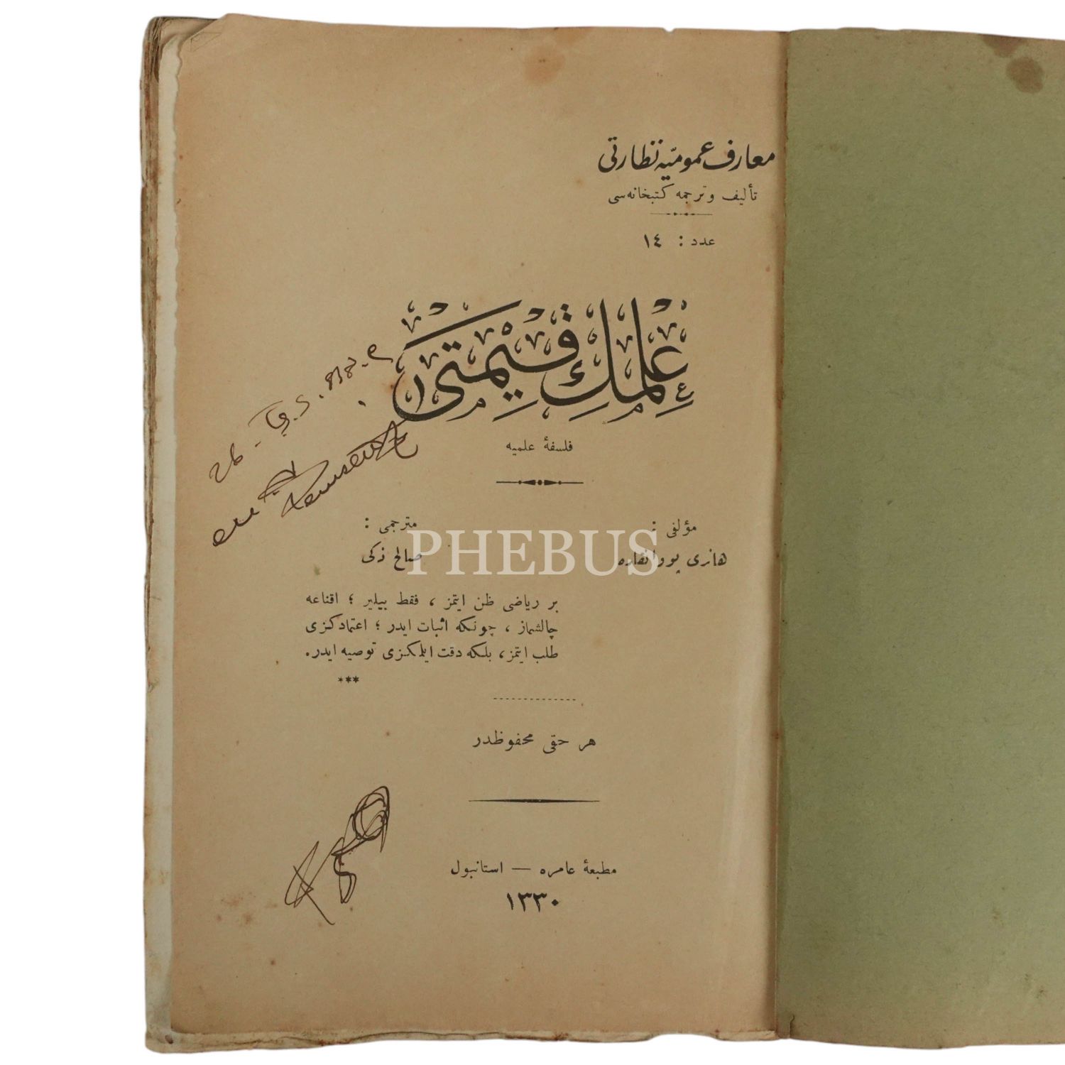 İLMİN KIYMETİ (Felsefe-i İlmiye), Henri Poincare, (çeviren: Salih Zeki), 1331, Matbaa-i Amire, 281 sayfa, 14x20 cm...