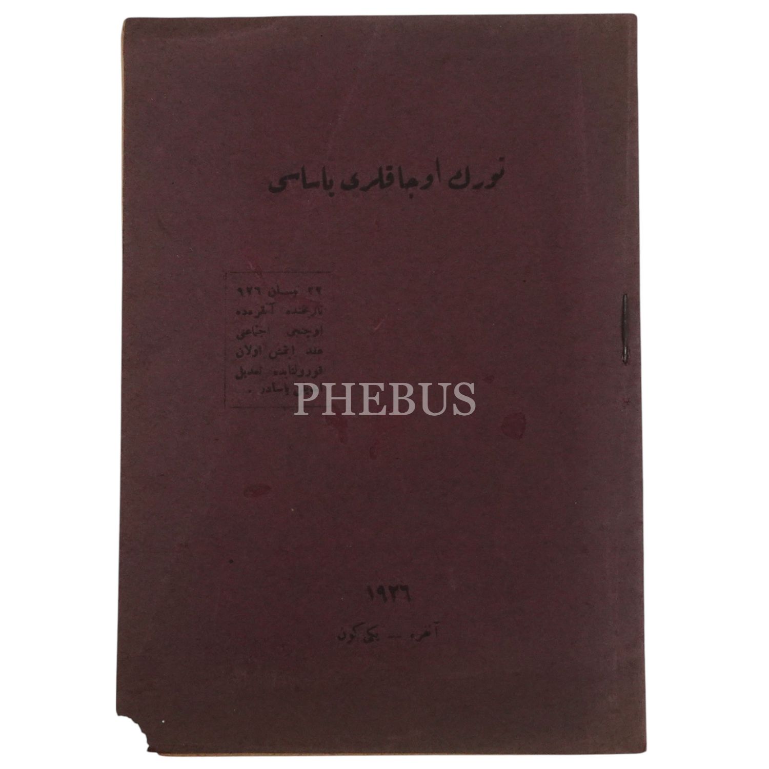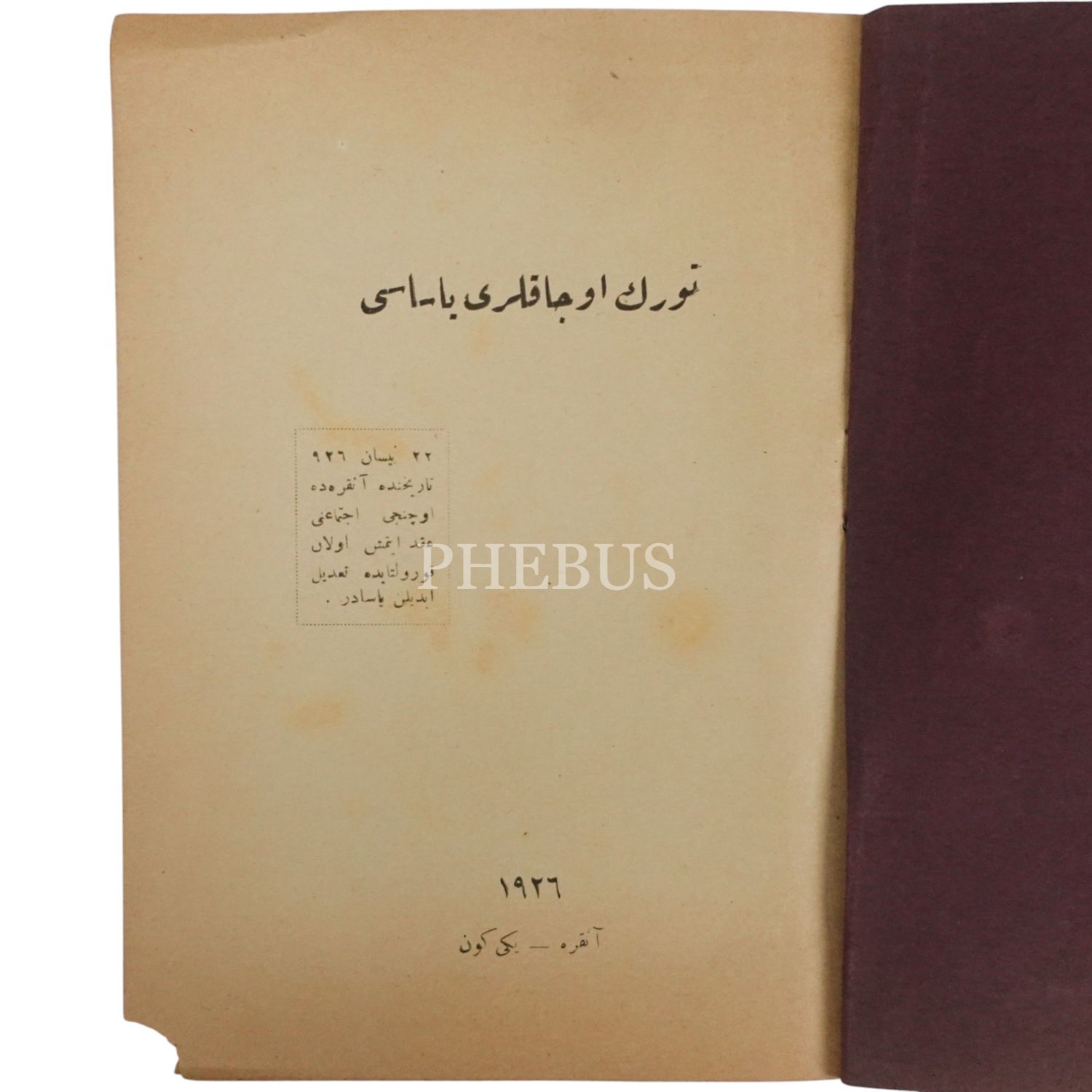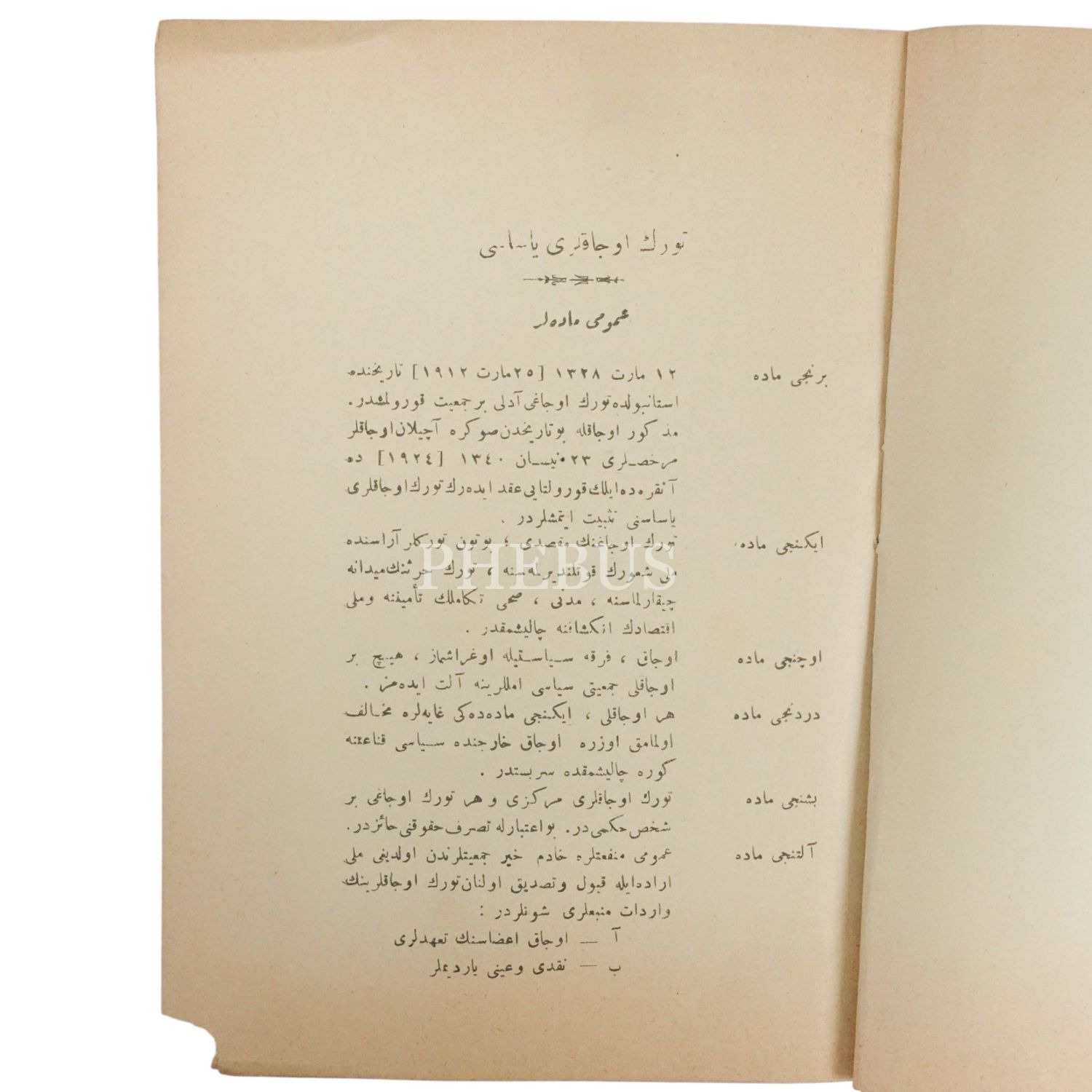 TÜRK OCAKLARI YASASI, 1926, Yenigün Matbaası, 16 sayfa, 14x20 cm...