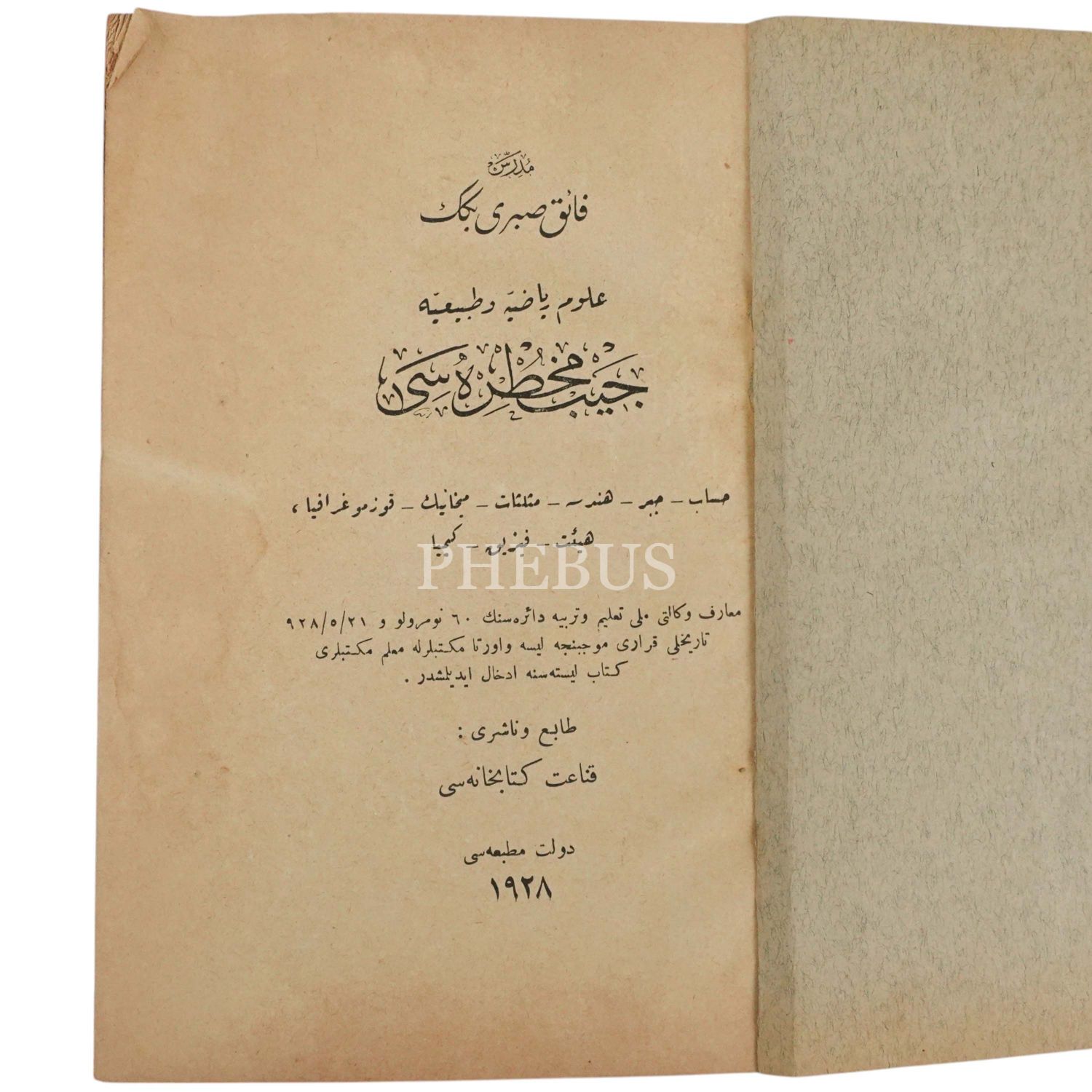 ULUM-I RİYAZİYE VE TABİİYE CEP NUHTIRASI, Faik Sabri, 1928, Kanaat Kütüphanesi,191 sayfa, 13x20 cm...