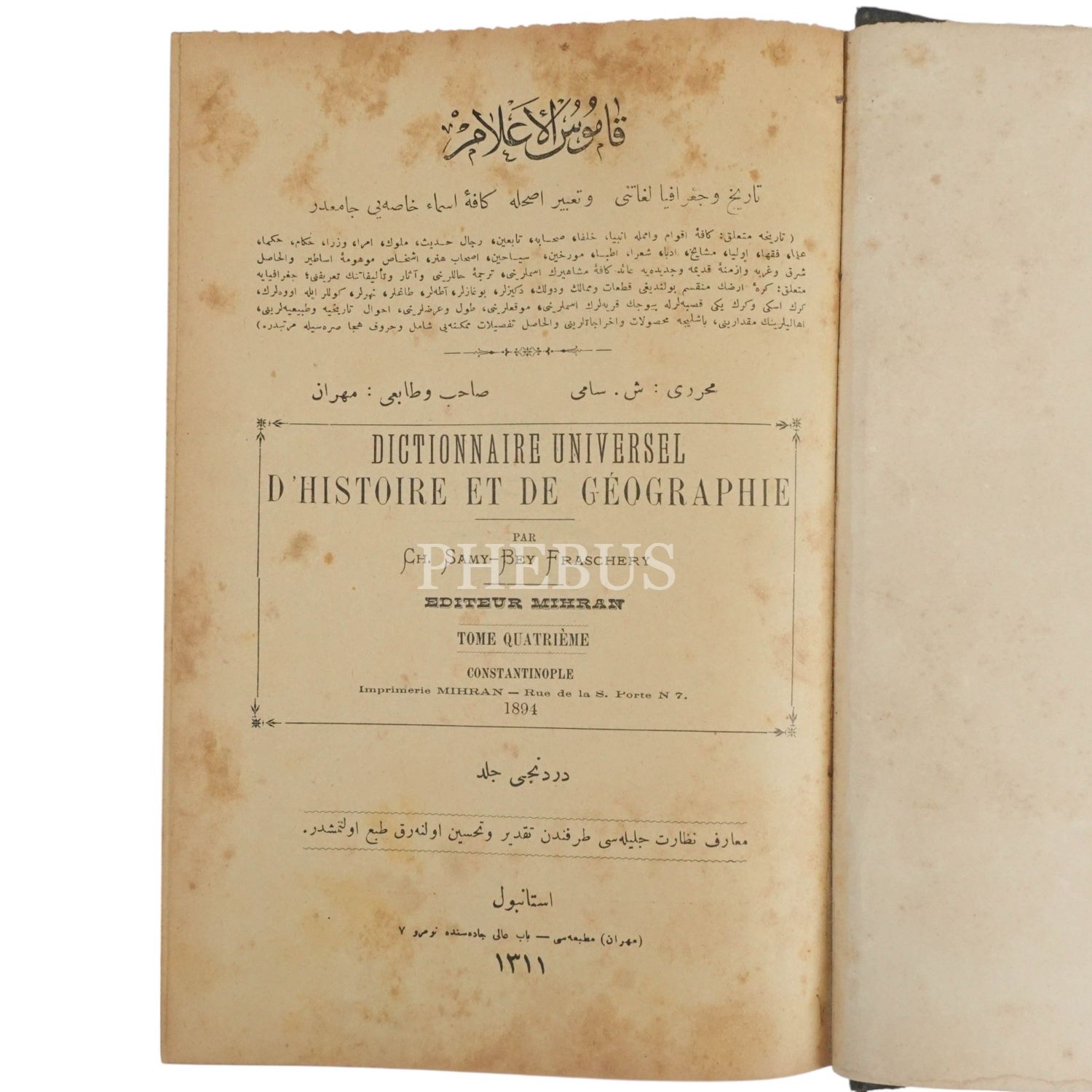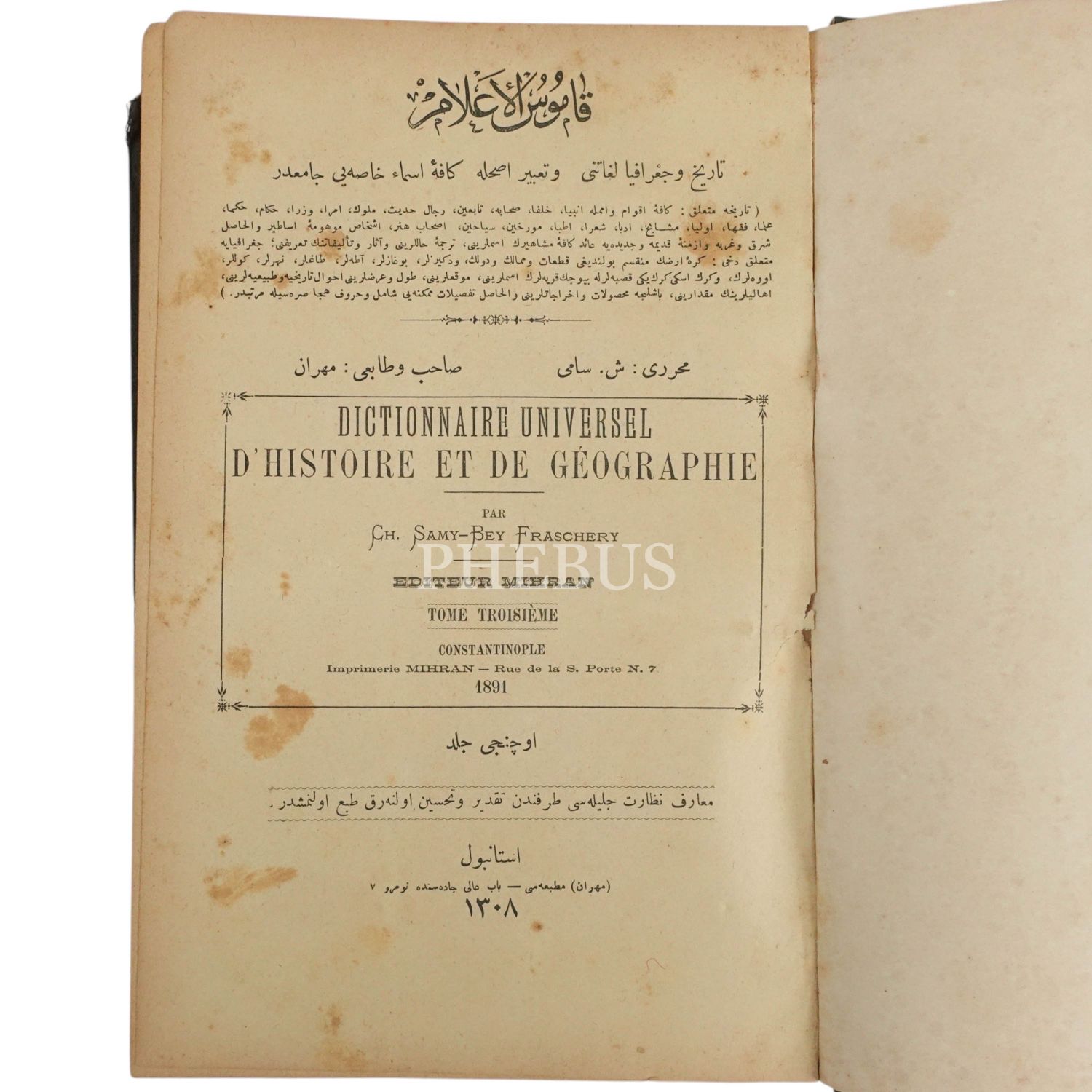 Türk edebiyatında birçok ilke imza atmış; ilk Türkçe romanın, adında Türk sözcüğü geçen ilk Türkçe´den Türkçe sözlüğün ve ilk Türkçe ansiklopedinin yazarı Şemseddin Sami tarafından kaleme alınan, tarih, coğrafya ve ünlü şahsiyetlerin biyografilerinin kaleme alındığı Türkiye´nin ilk ansiklopedisidir. Satışa sunduğumuz nüsha bu ansiklopedinin tam ve eksiksiz hali olmakla birlikte orijinal yayıncı cildindedir.