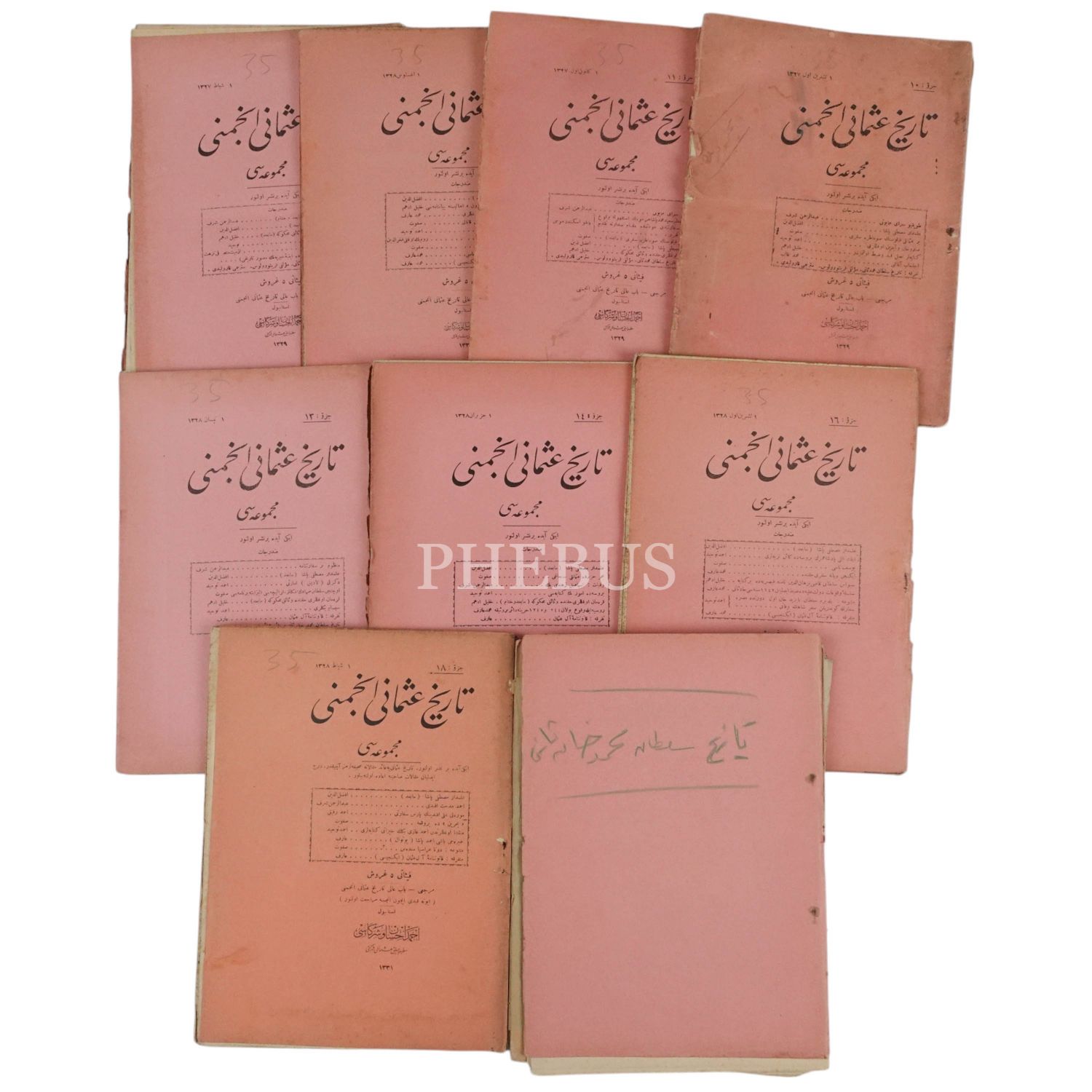 TARİH-İ OSMANİ ENCÜMENİ MECMUASI´nın 1 Teşrinievvel 1327 ile 1 Şubat 1328 tarihleri arasında yayımlanan 10, 11, 12, 13, 14, 15, 16 ve 18. sayıları...