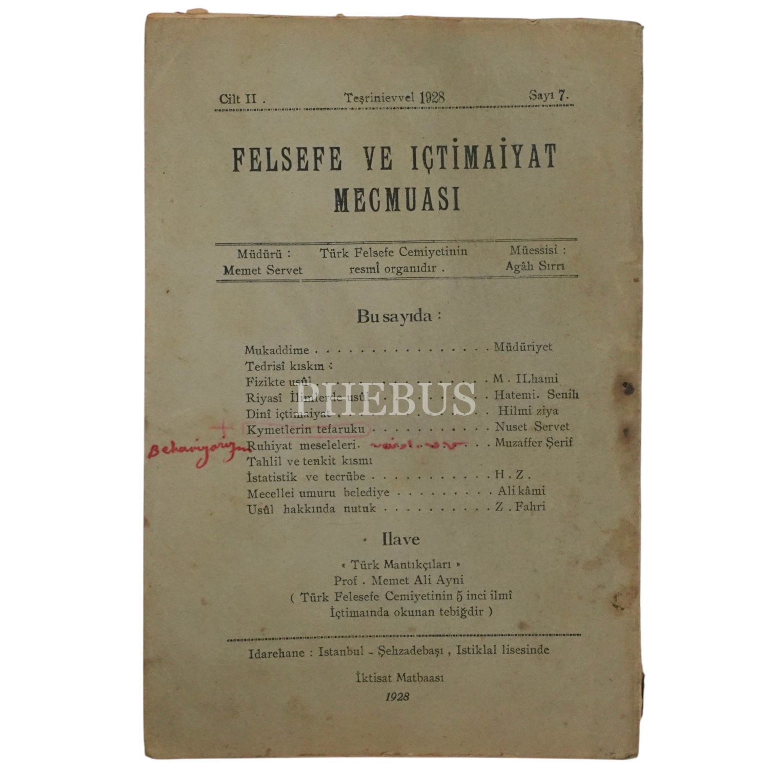FELSEFE VE İÇTİMAİYAT MECMUASI´NIN Teşrinievvel 1928 tarihinde yayımlanan 7. sayısı...