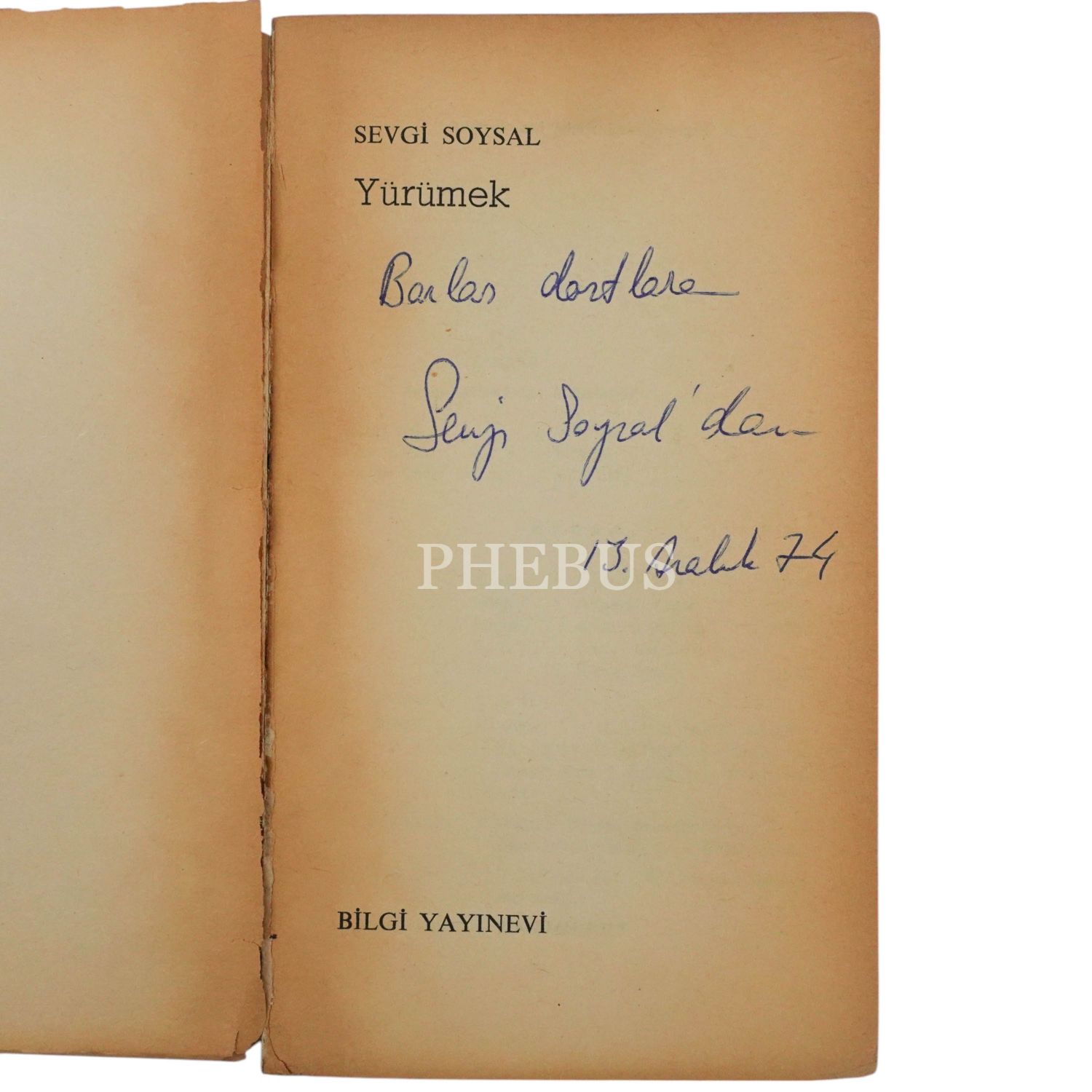 "Barlas dostlara Sevgi Soysal´dan" ithafıyla 13 Aralık 1974 tarihinde imzalanmıştır.