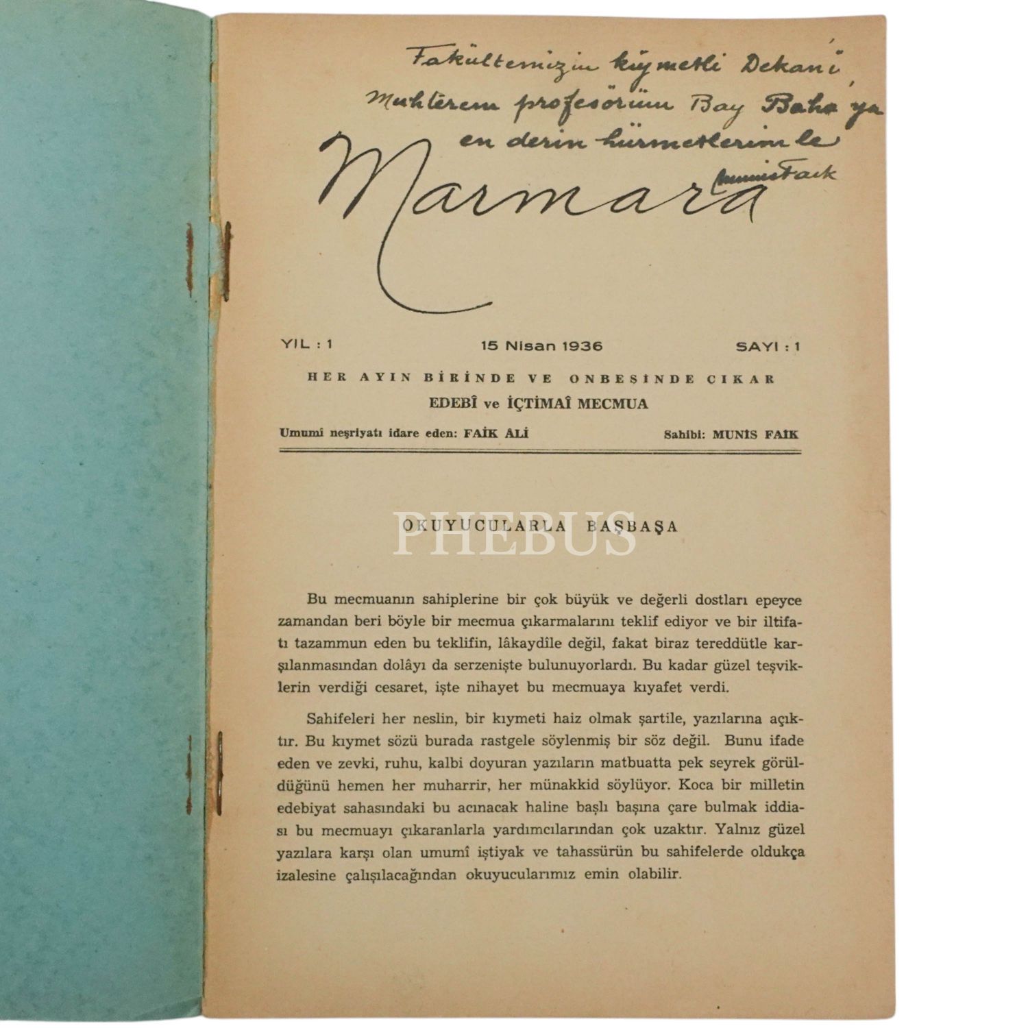 Faik Ali Ozansoy´un çıkardığı MARMARA dergisinin ilk sayısı, 15 Nisan 1936, 32 sayfa, 17x24 cm...