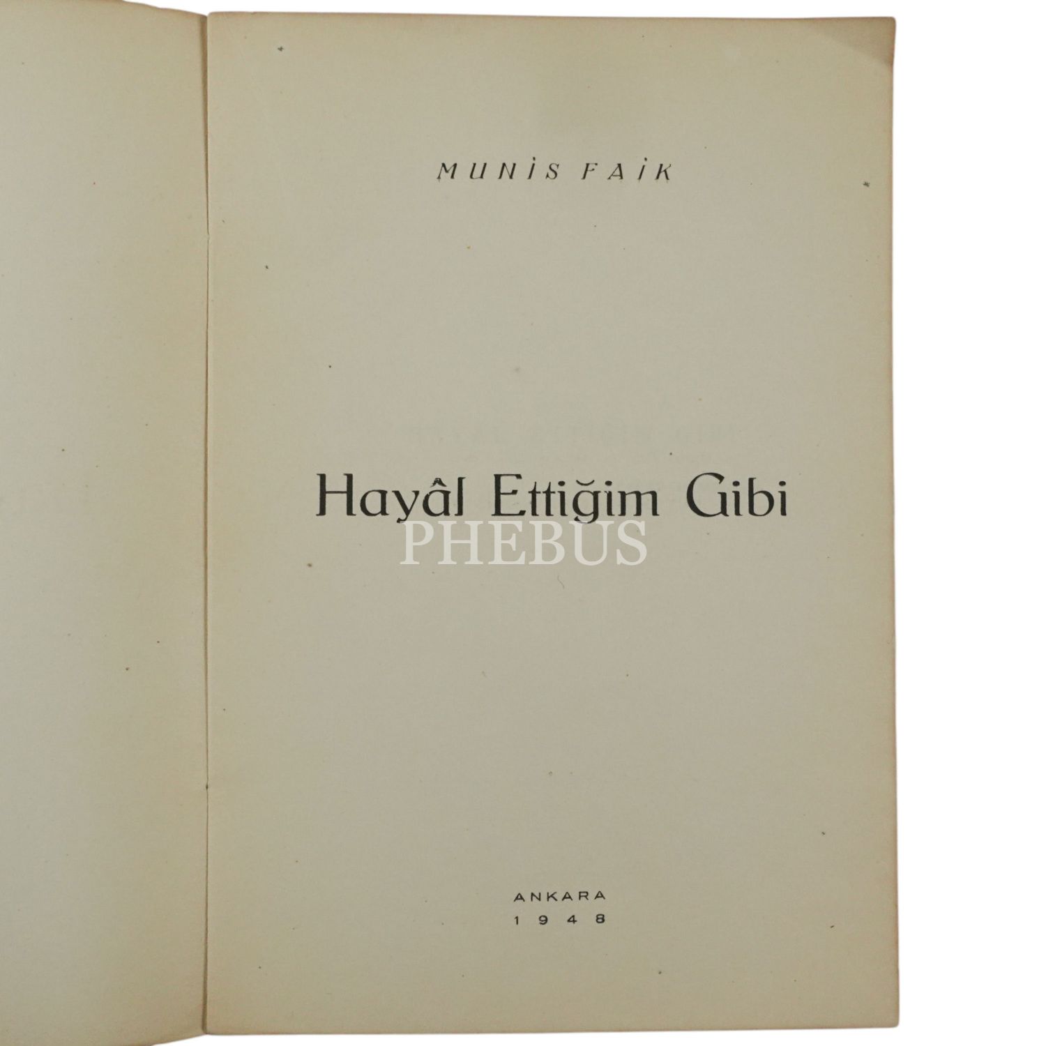 HAYAL ETTİĞİM GİBİ, Munis Faik Ozansoy, 1948, Ar Basımevi, 40 sayfa, 14x20 cm...