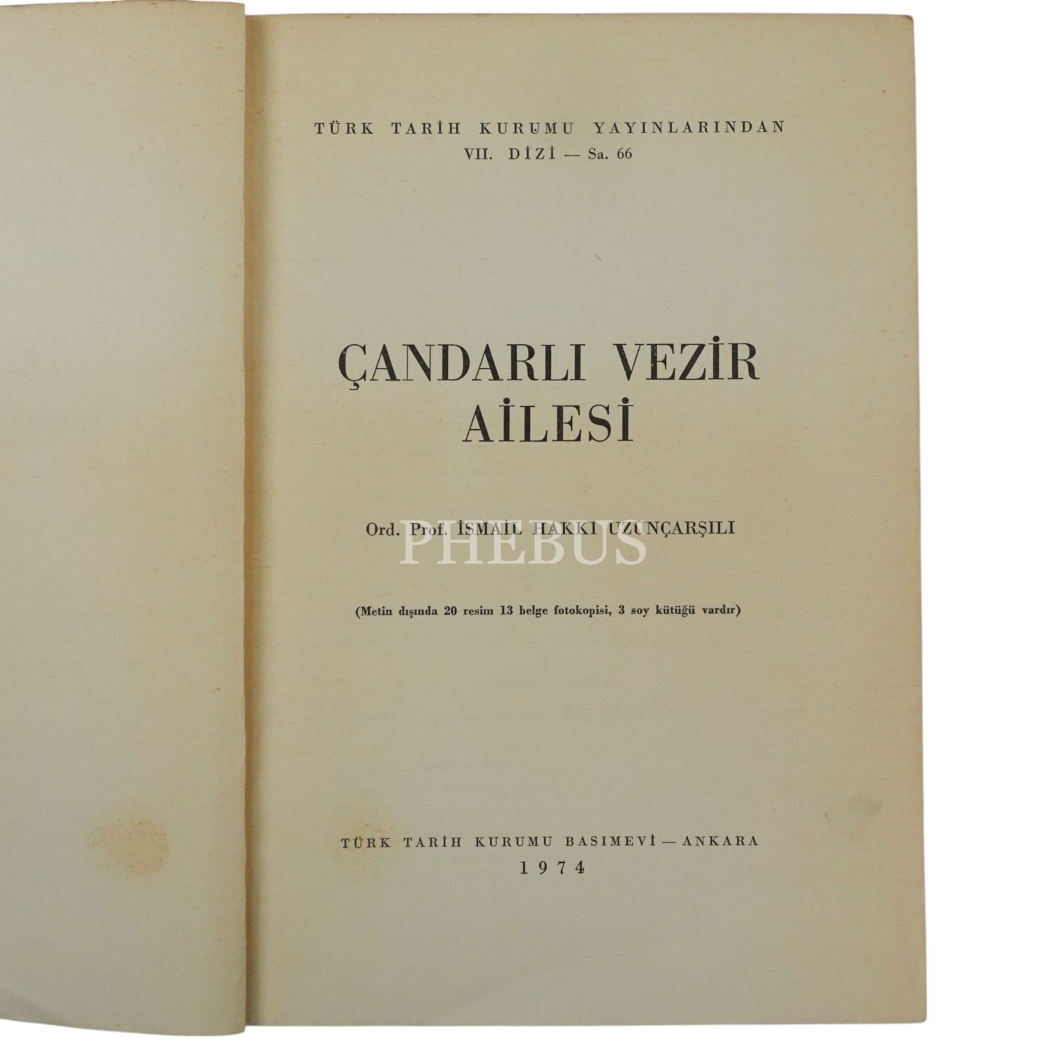ÇANDARLI VEZİR AİLESİ, İsmail Hakkı Uzunçarşılı, 1974, Türk Tarih Kurumu Basımevi, 111 sayfa, 17x24 cm...