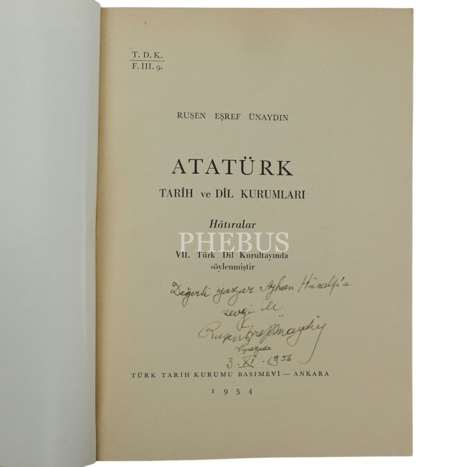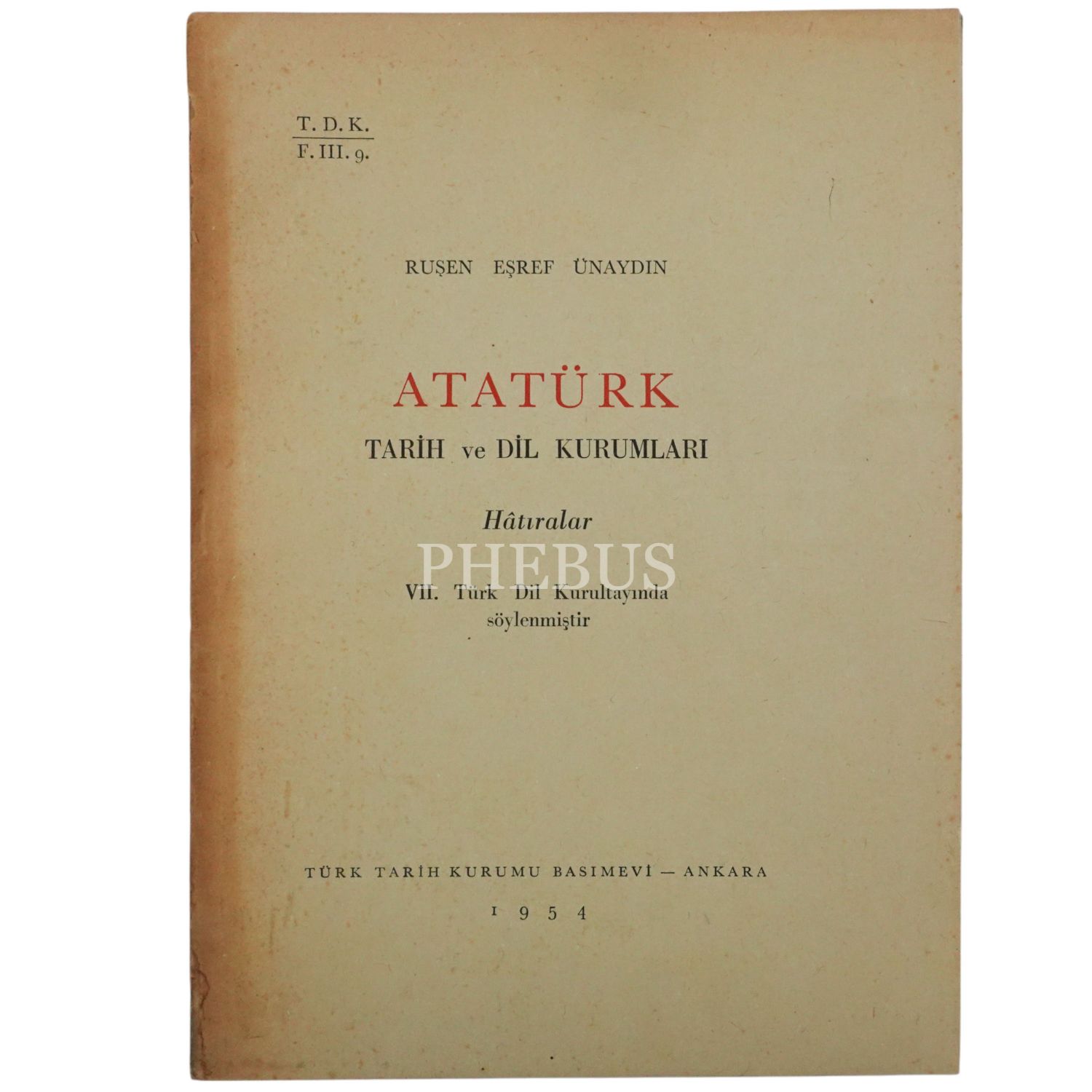 ATATÜRK TARİH VE DİL KURUMLARI HATIRALAR, Ruşen Eşref Ünaydın, 1954, Türk Tarih Kurumu Basımevi, 70 sayfa, 18x24 cm...