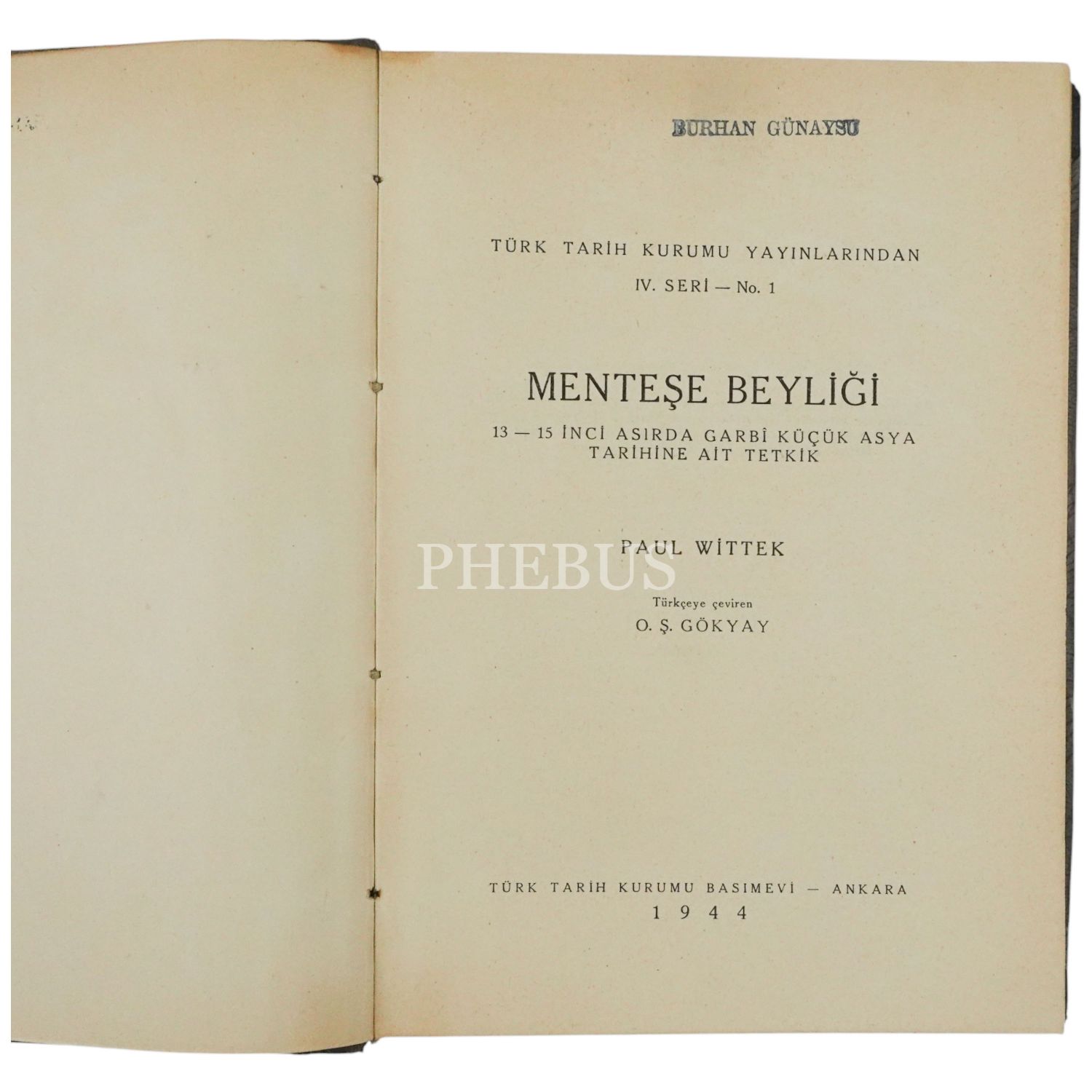 MENTEŞE BEYLİĞİ (13-15. Asırda Garbi Küçük Asya Tarihine Ait Tetkik), Paul Wittek, (çeviren: Orhan Şaik Gökyay), 1944, Türk Tarih Kurumu Yayınları, 191 sayfa, 18x24 cm...