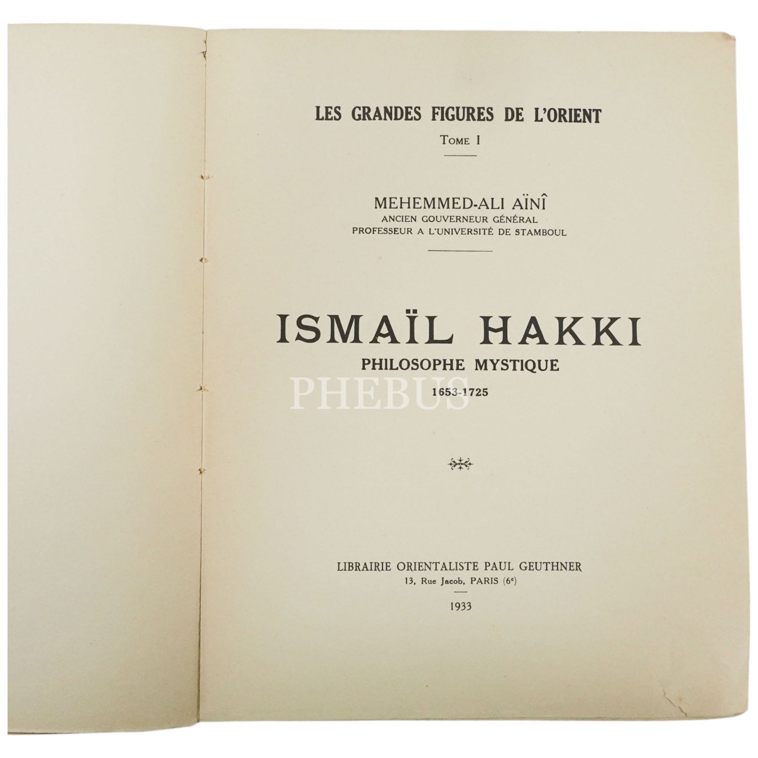 ISMAIL HAKKI (Philosophe Mystique), Mehmet Ali Ayni, 1933, Librairie Orientaliste Paul Geuthner (Paris), 95 sayfa, 19x24 cm...
