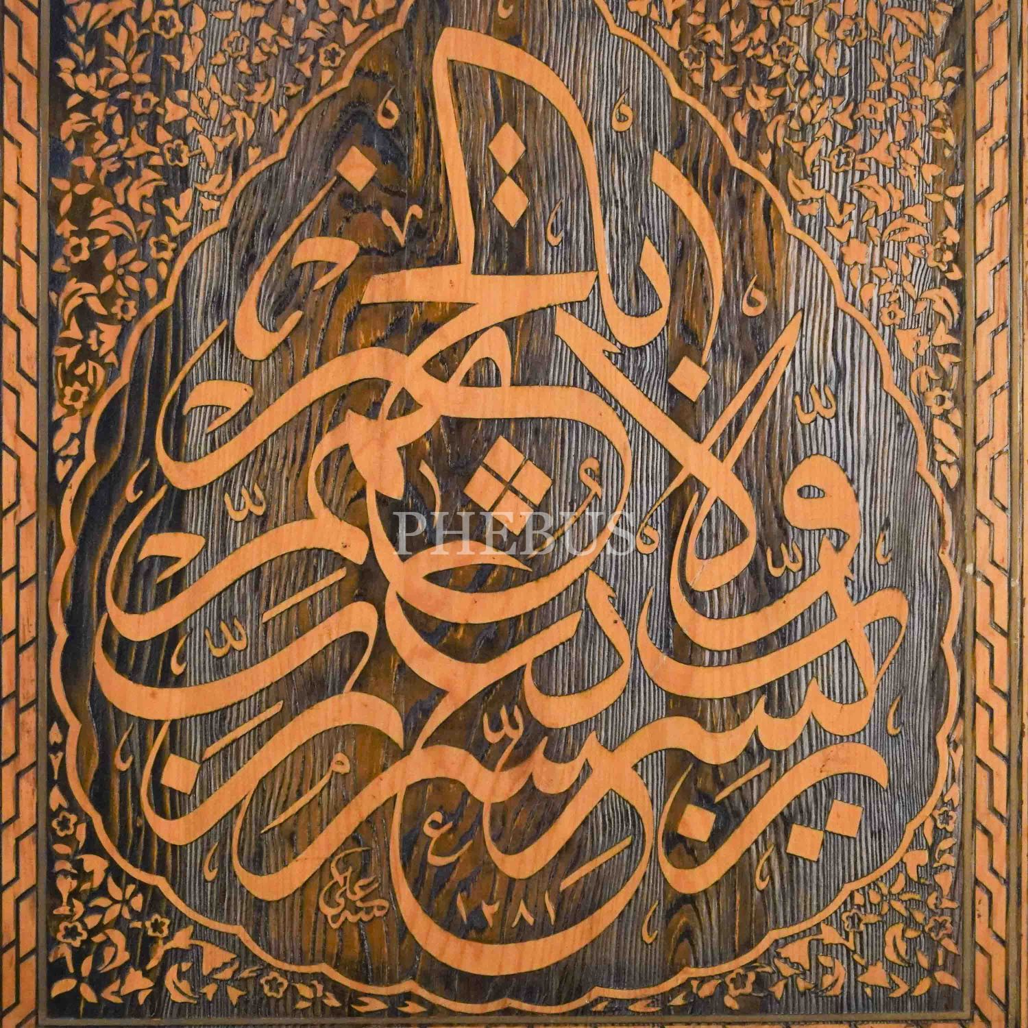 Çırçırlı Ali Efendi´nin meşhur rabbiyessir istif yazısı işlenmiş naht, nahhat: Nail Arıkdal, 64x58 cm...
