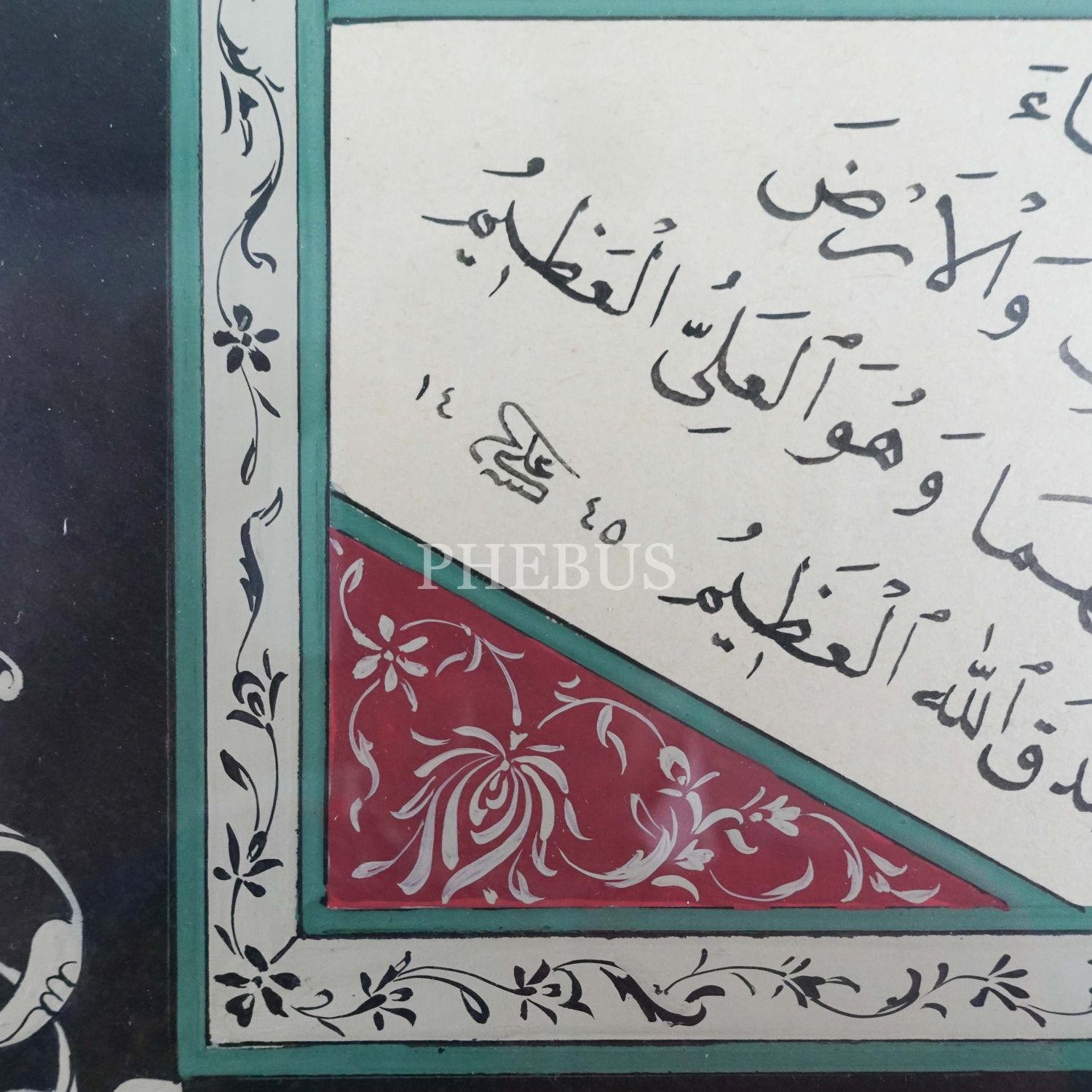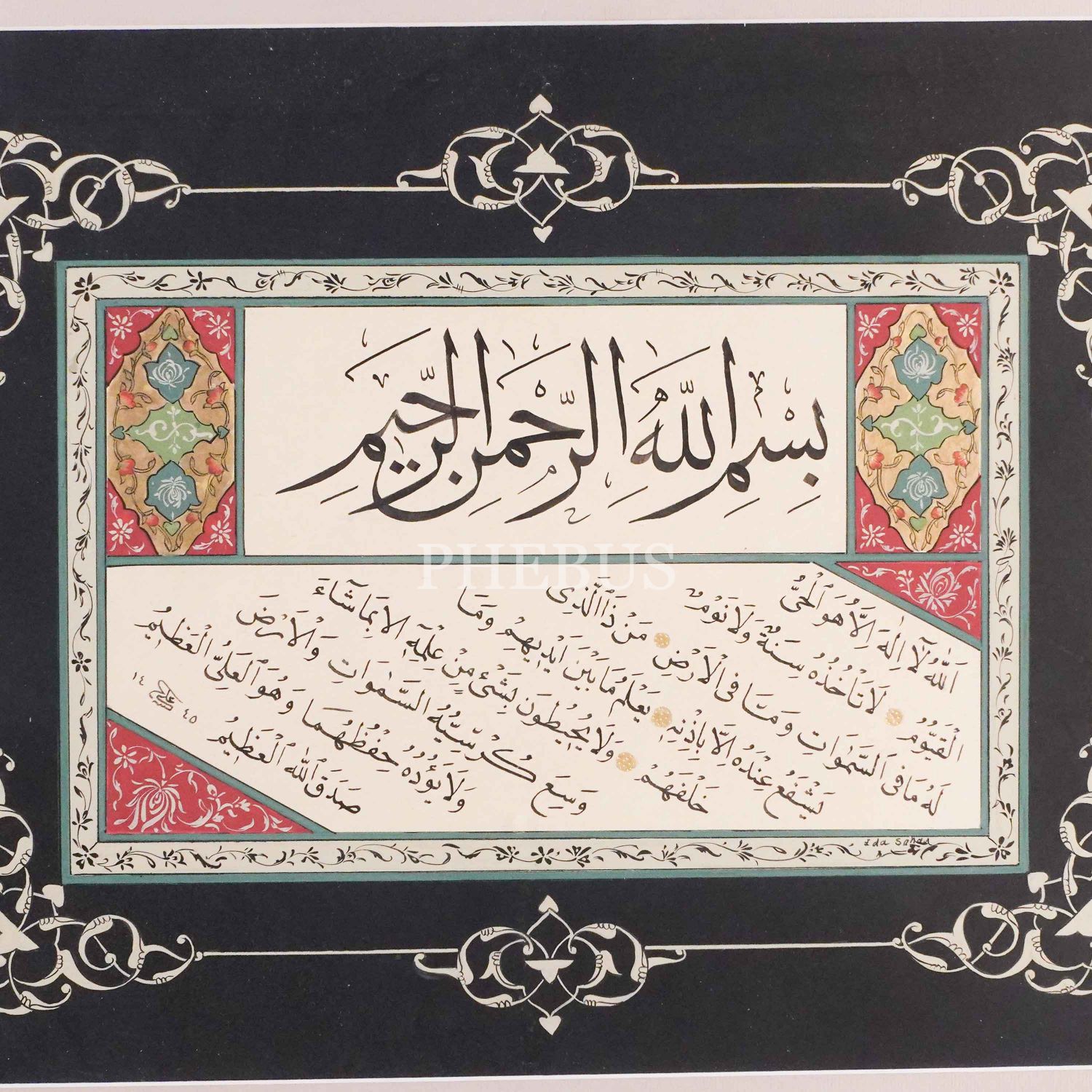 Ali Hüsrevoğlu ketebeli sülüs-nesih kıta, 1445 tarihli, (Tezhip: Eda Şahan), çerçeve: 60x51 cm...