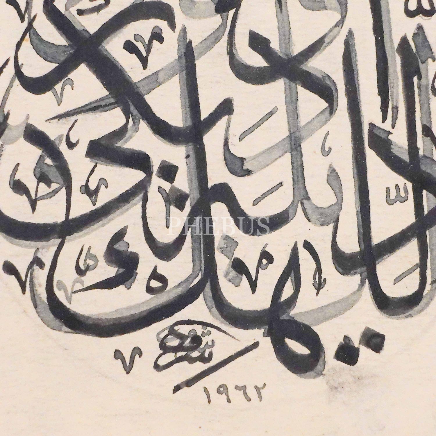 Şeref Akdik ketebeli sülüs istif yazı, 1962 tarihli, çerçeve: 25x25 cm...