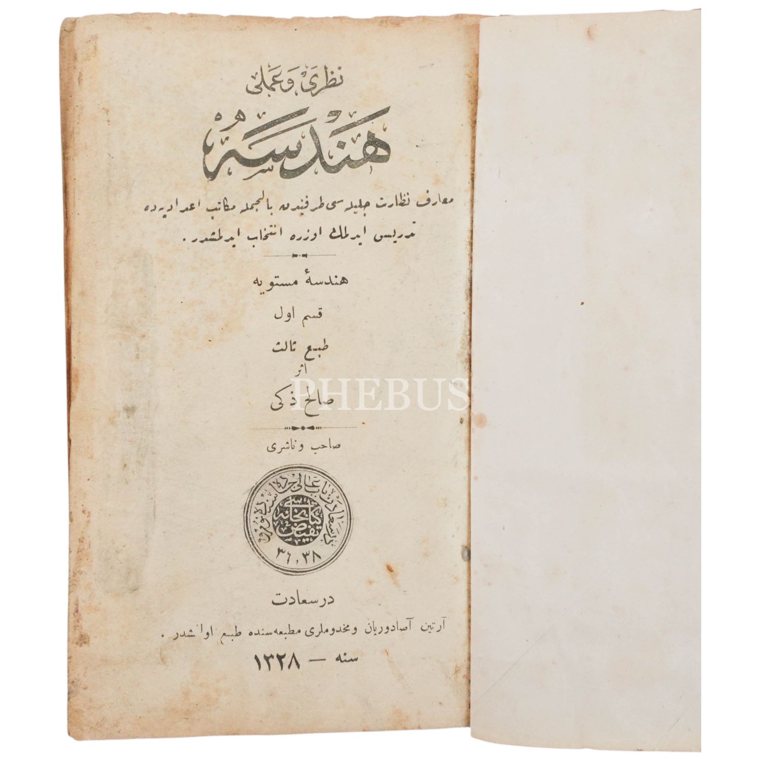 NAZARİ VE AMELİ HENDESE, Salih Zeki, 1327, Artin Asaduryan Şirket-i Mürettibiye Matbaası, 200 sayfa, 12x18 cm...