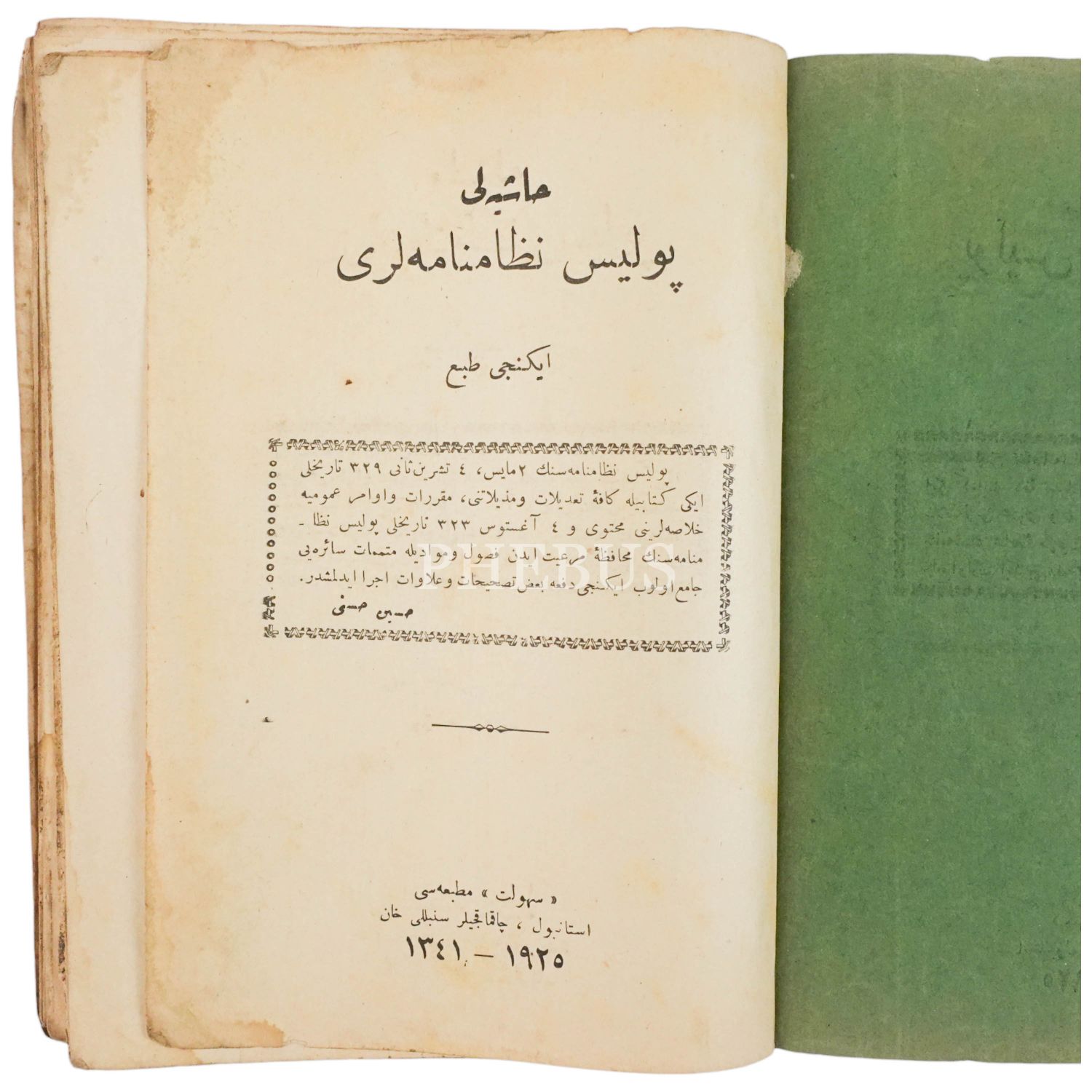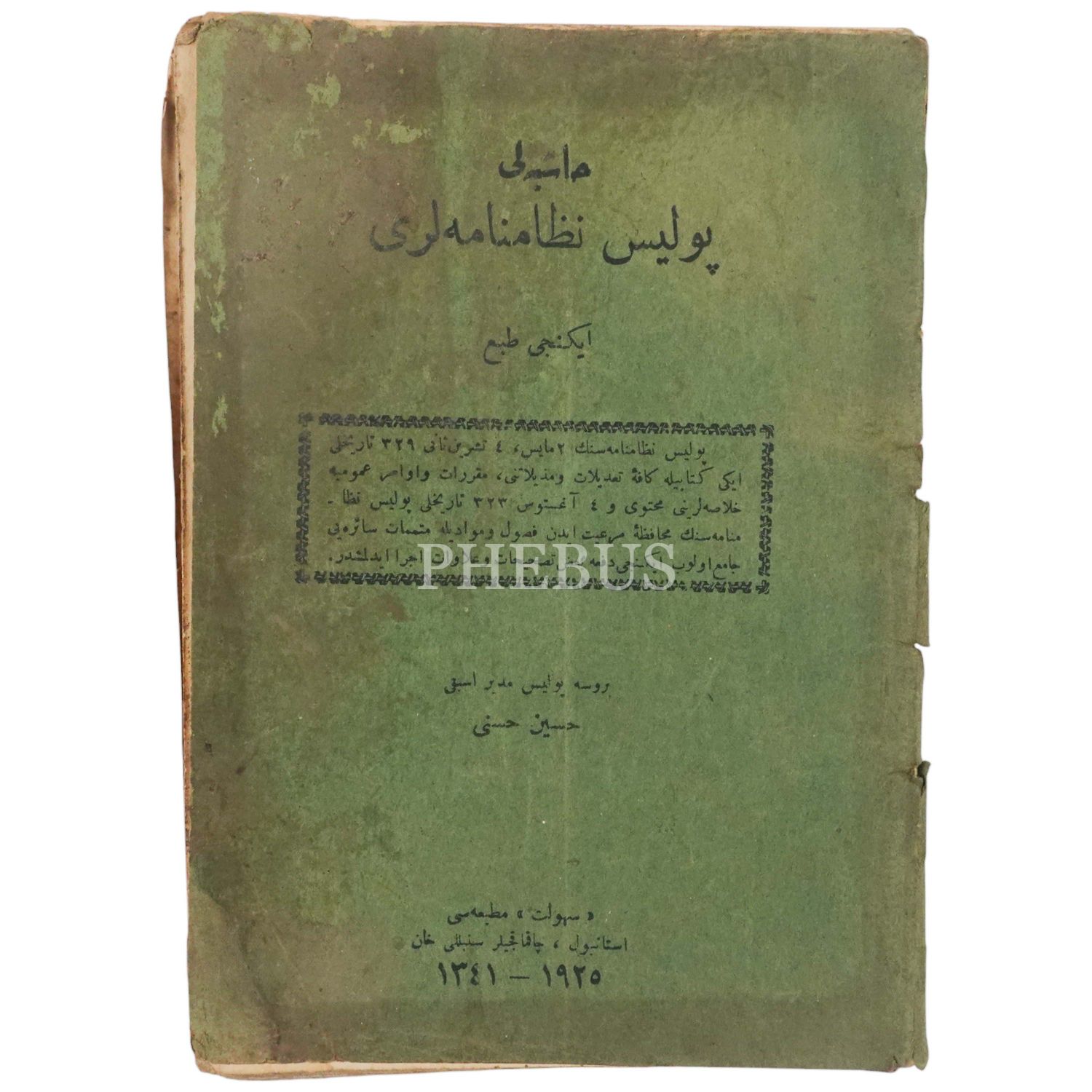 HAŞİYELİ POLİS NİZAMNAMELERİ, 1925, Hüseyin Hüsnü, 96 sayfa, 14x20 cm...