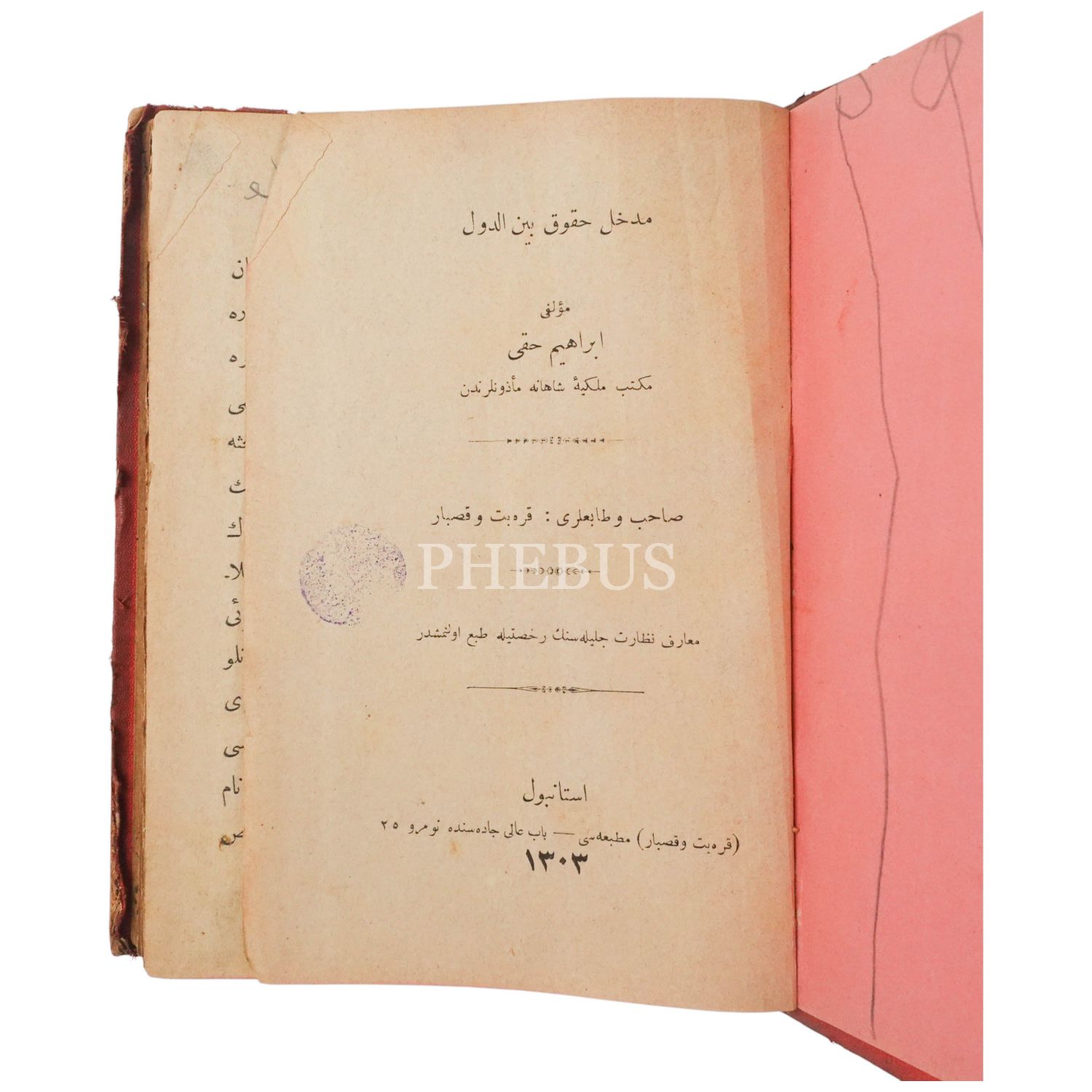 MEDHAL-İ HUKUK-I BEYNE´D-DÜVEL, İbrahim Hakkı, 1303, Karabet ve Kasbar Matbaası, 240 sayfa, 14x20 cm...