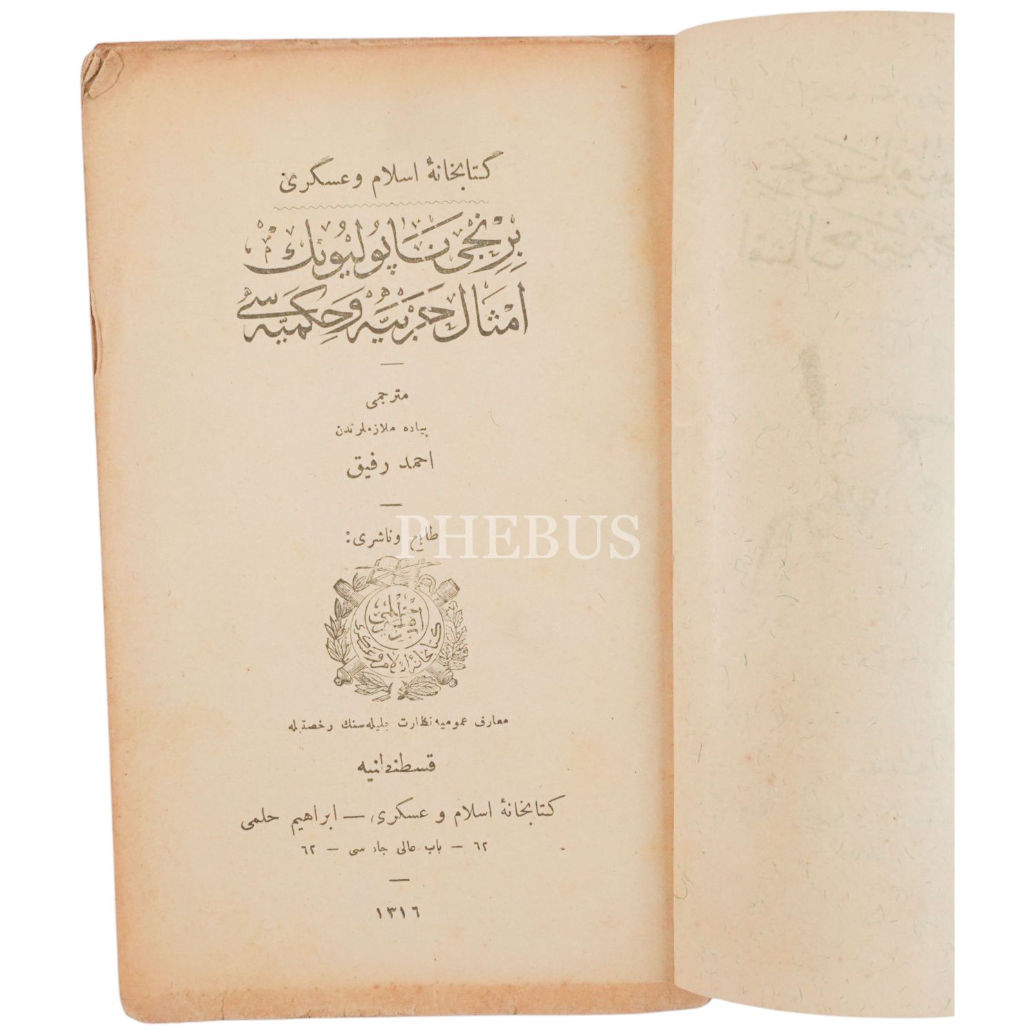 BİRİNCİ NAPOLYON´UN EMSAL-İ HARBİYE VE HÜKMİYESİ, Ahmed Refik, 1316, Kitabhane-i islam ve Askeri, 66 sayfa, 12x19 cm...