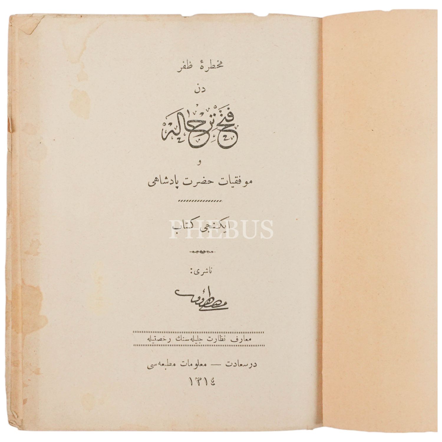 MUHTIRA-İ ZAFERDEN FETH-İ TIRHALA VE MUVAFFAKİYAT-I HAZRET-İ PADİŞAHİ (2. Kitap), Mustafa Rauf, 1314, Malumat Matbaası, 32 sayfa, 14x18 cm...