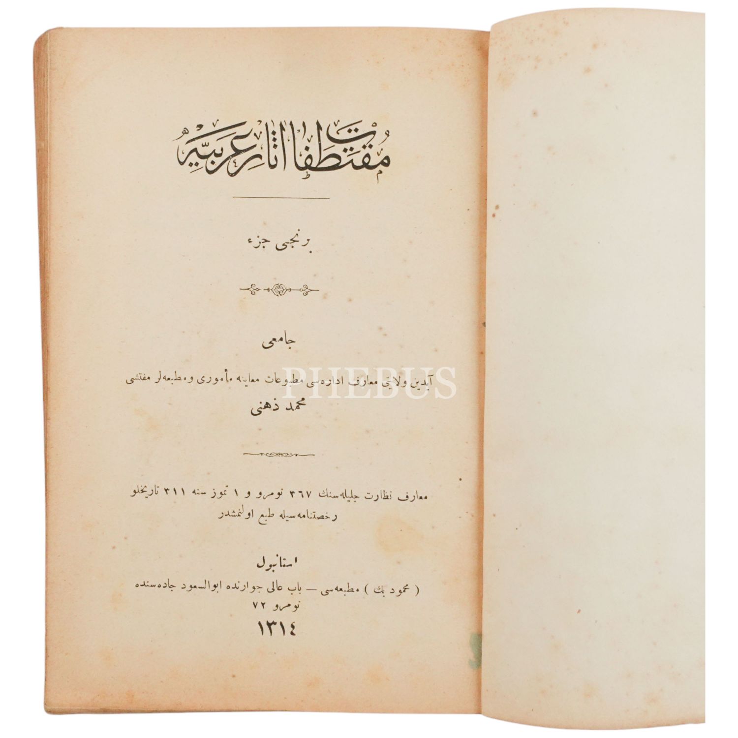 MUKTATAFAT-I ASAR-I ARABİYYE, Mehmed Zihni, 1314, Mahmud Bey Matbaası, 126 sayfa, 14x20 cm...