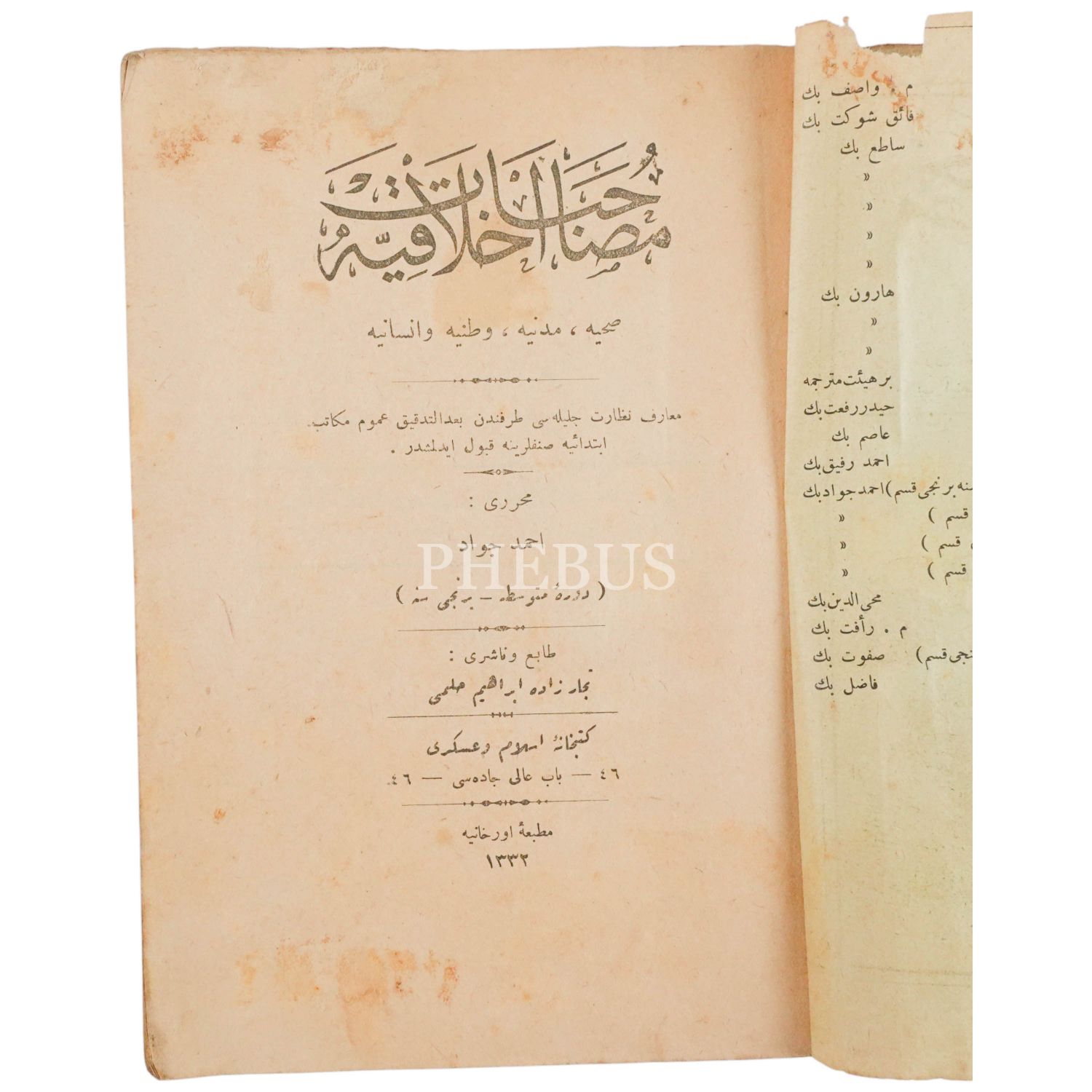 MUSAHABAT-I AHLAKİYE, Ahmed Cevad, 1332, Kitaphane-i İslam ve Askeri, 152 sayfa, 14x20 cm...