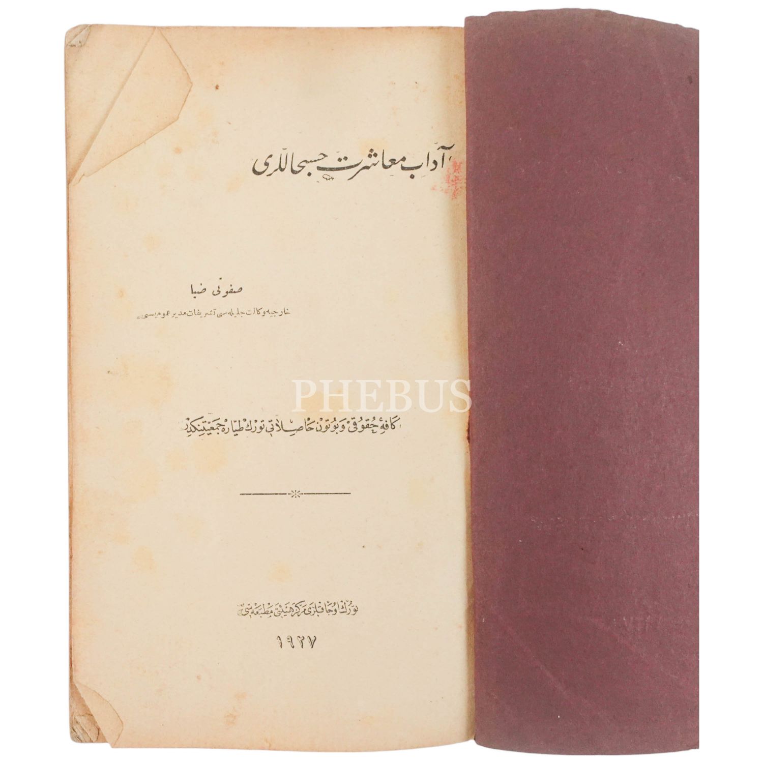ADAB-I MUAŞERET, Safveti Ziya, 1927, Türk Ocakları Merkez Heyeti Matbaası, 234 sayfa, 14x20 cm...