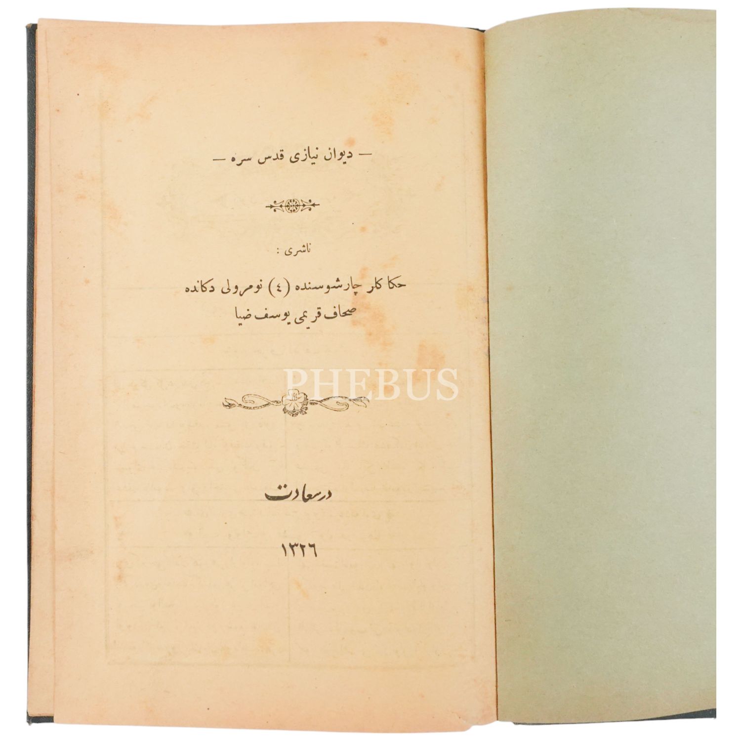 DİVAN-I NİYAZİ, Mehmed Niyazi Mısrî, 1326, 84 sayfa, 16x24 cm...