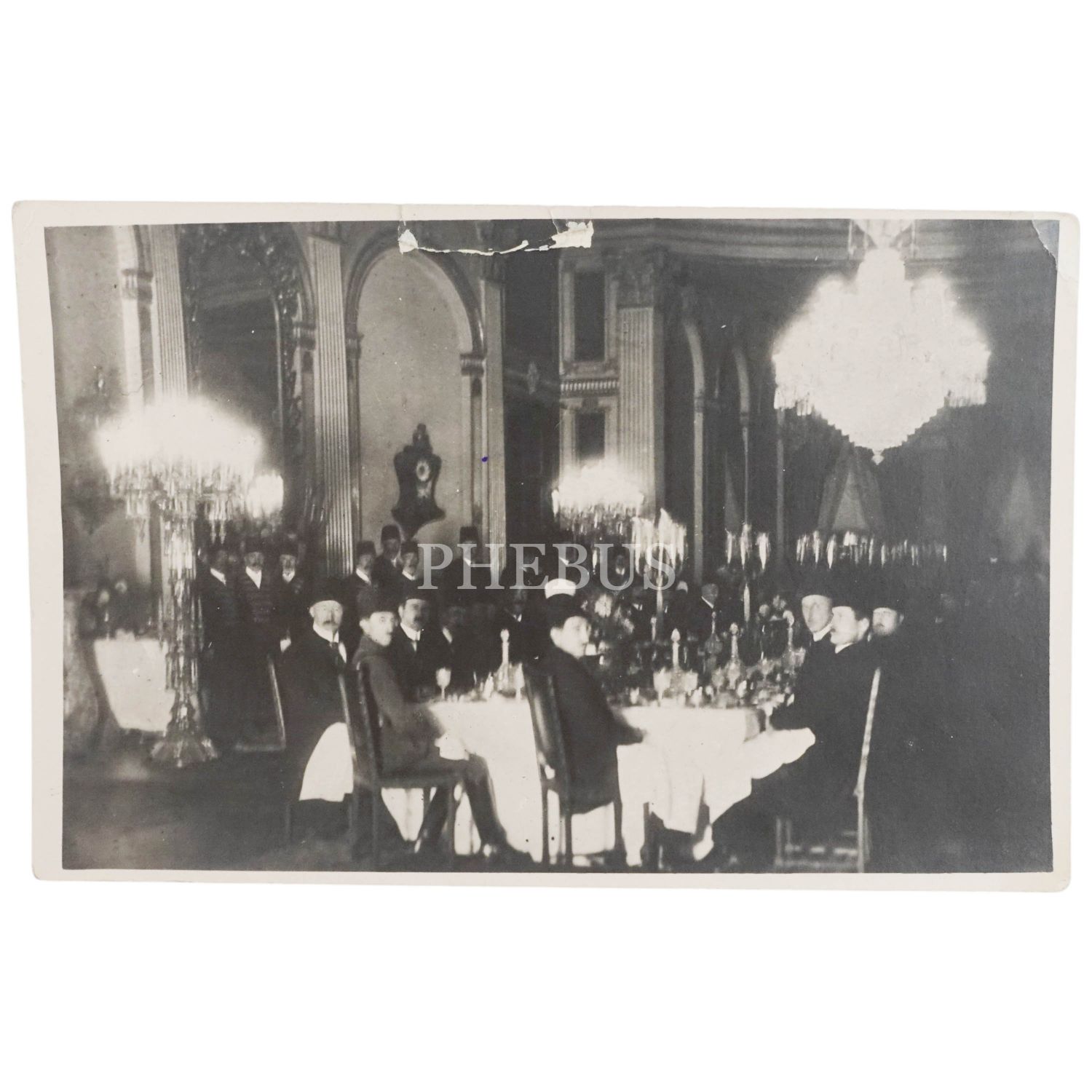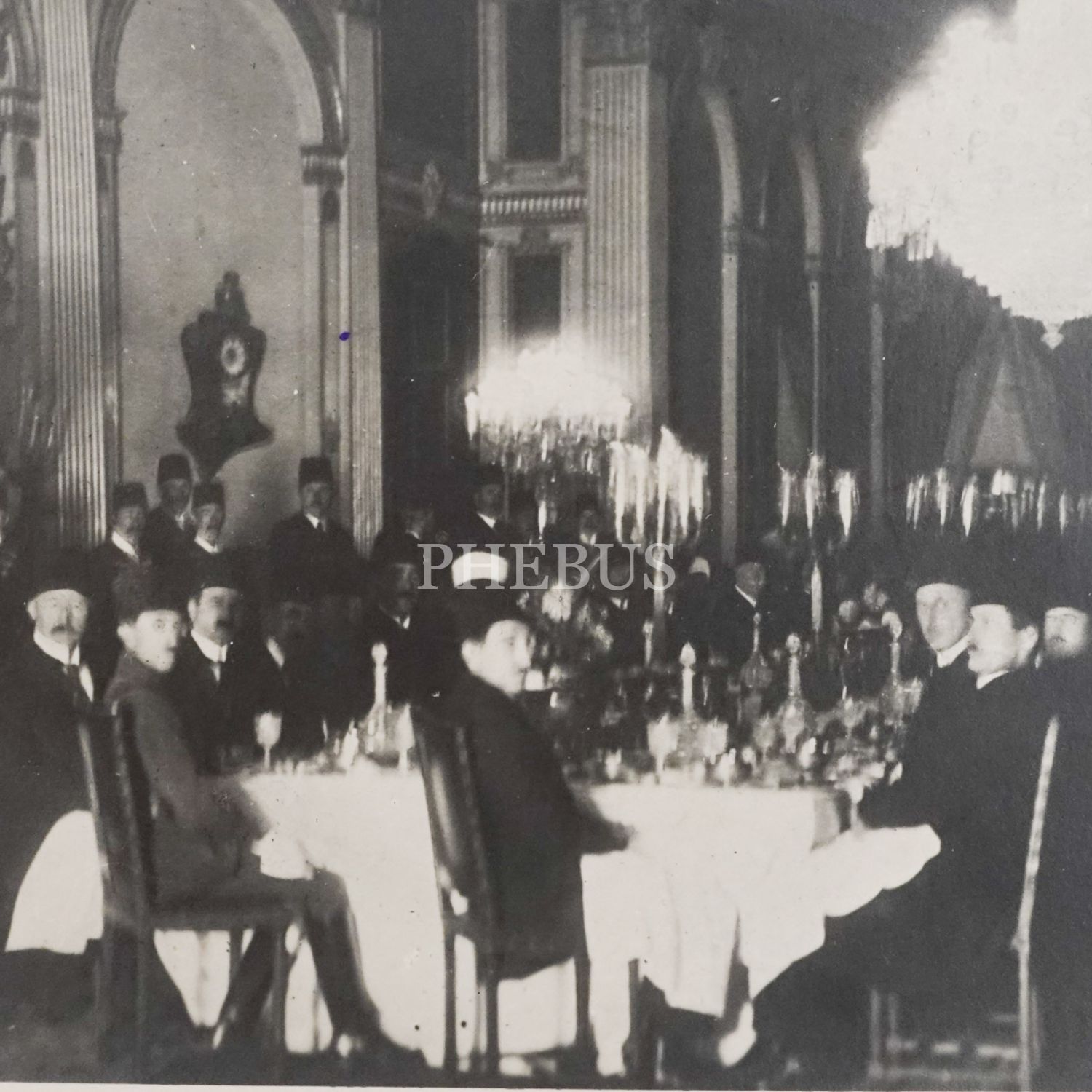 Son Halife Abdülmecid Efendi´nin 24 Kasım 1922 Cuma günü İstanbul´da düzenlenen biat merasiminden sonra sarayda verilen yemekten bir enstantane fotoğraf, 14x9 cm...