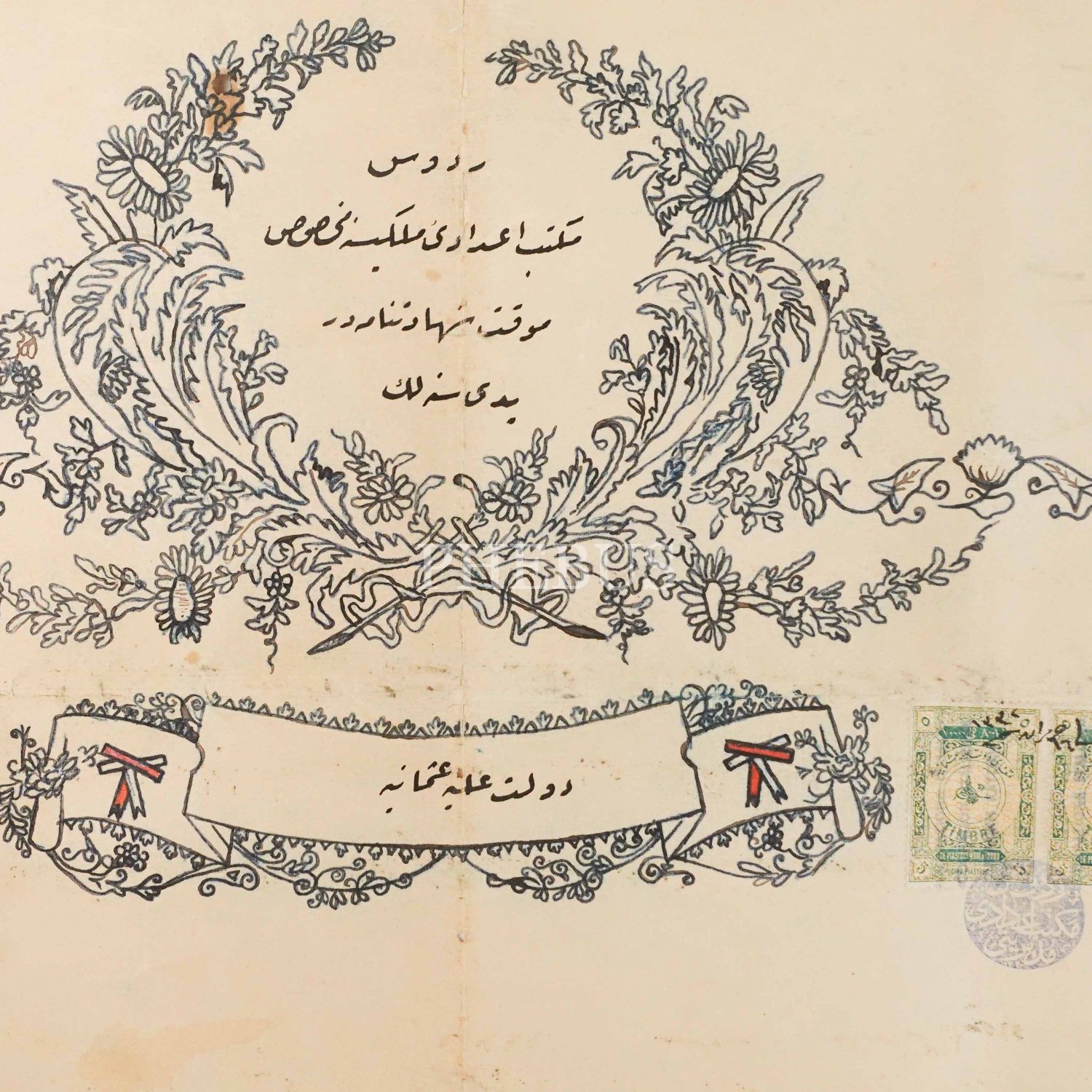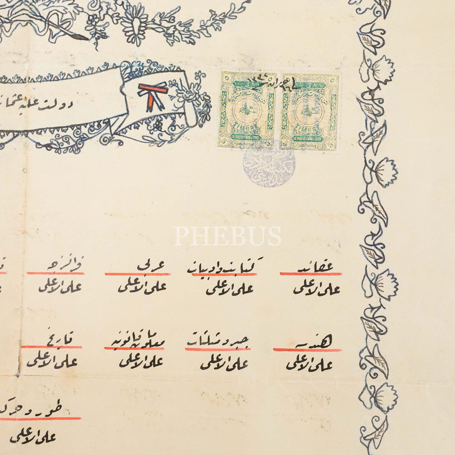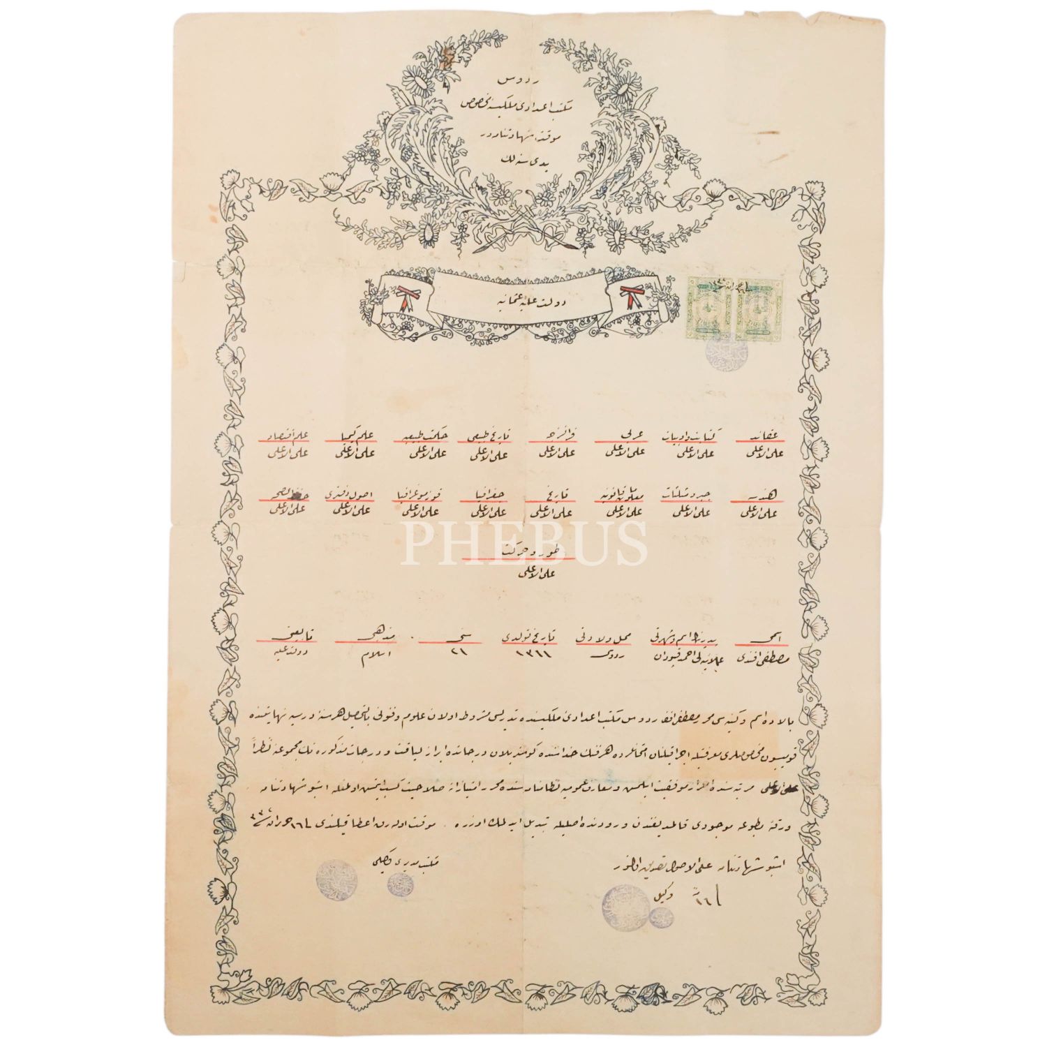 Rodos Mekteb-i İdadi-i Mülkiyesi tarafından Mustafa Efendi´ye verilen tamamı el ile hazırlanmış muvakkat (geçici) diploma, 1332, 40x57 cm...