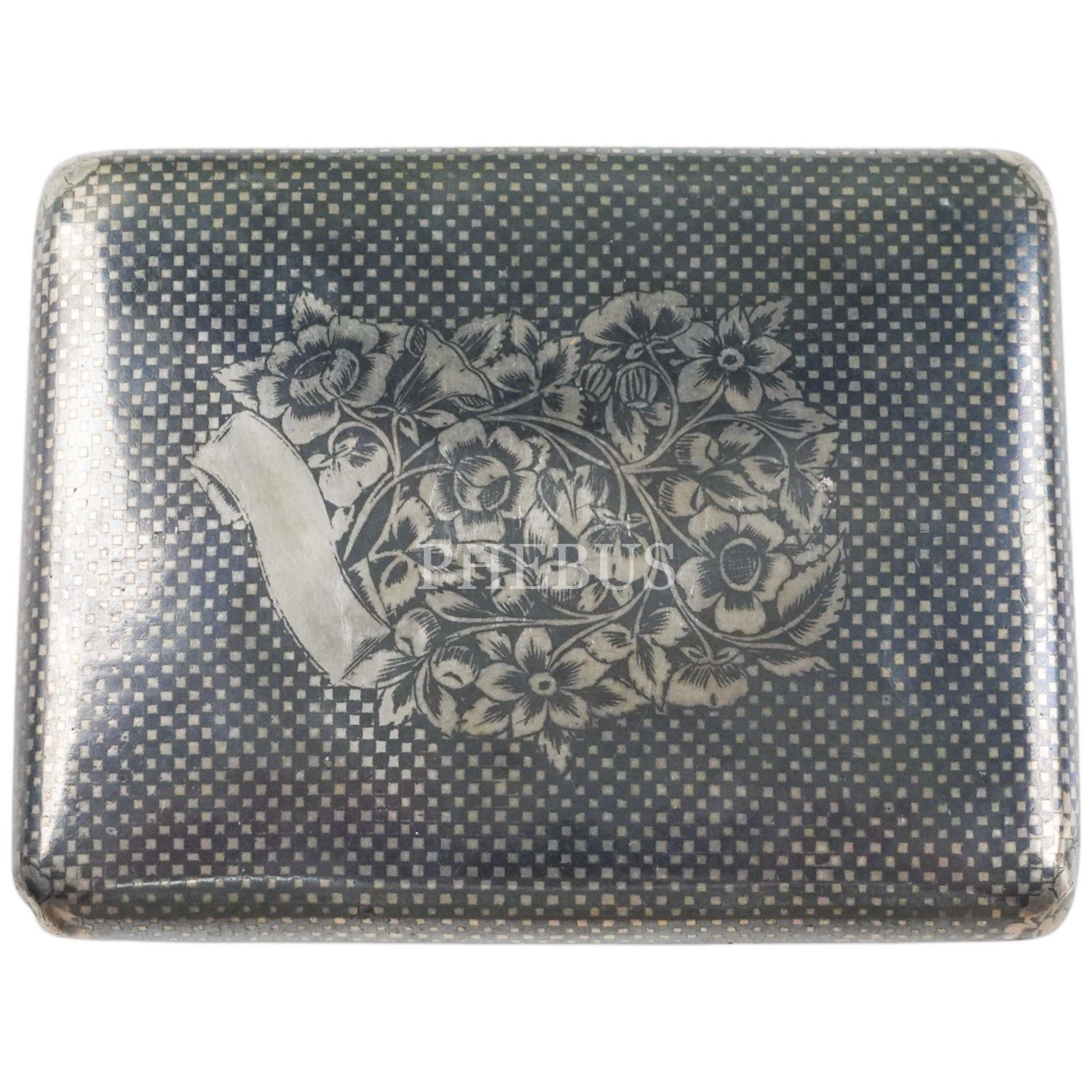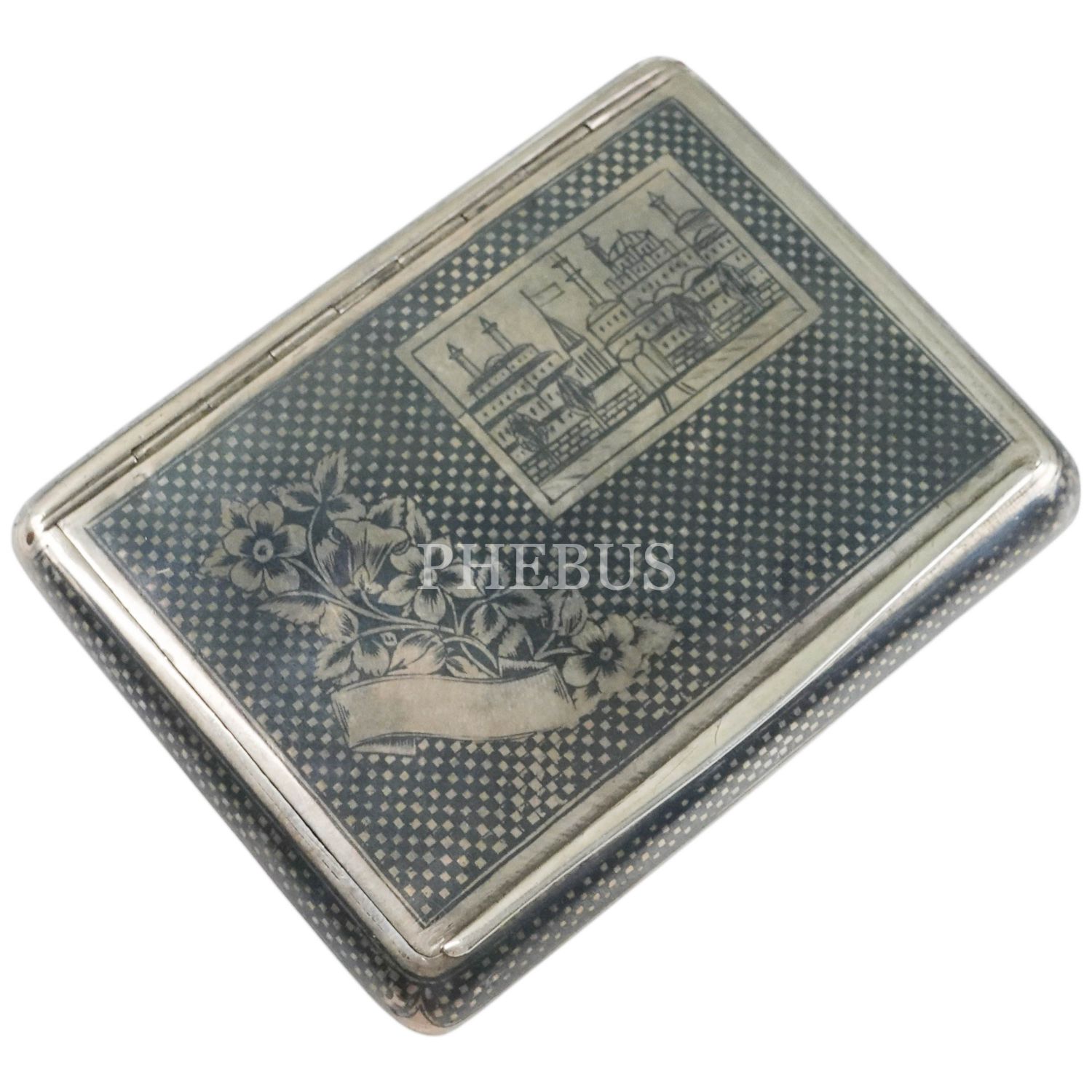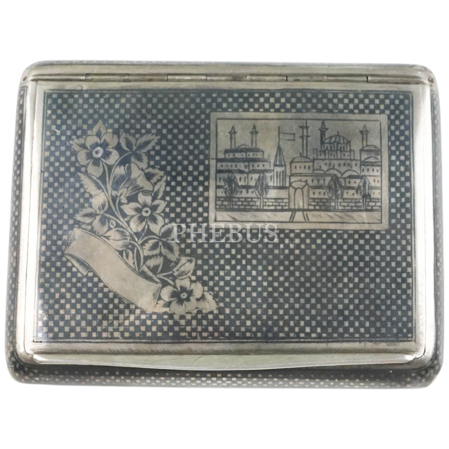 Savat işçiliğiyle İstanbul silüeti ve floral desenlerle bezenmiş, Osmanlıca "Van" damgalı gümüş tabaka, 139 gr, 10x7 cm...