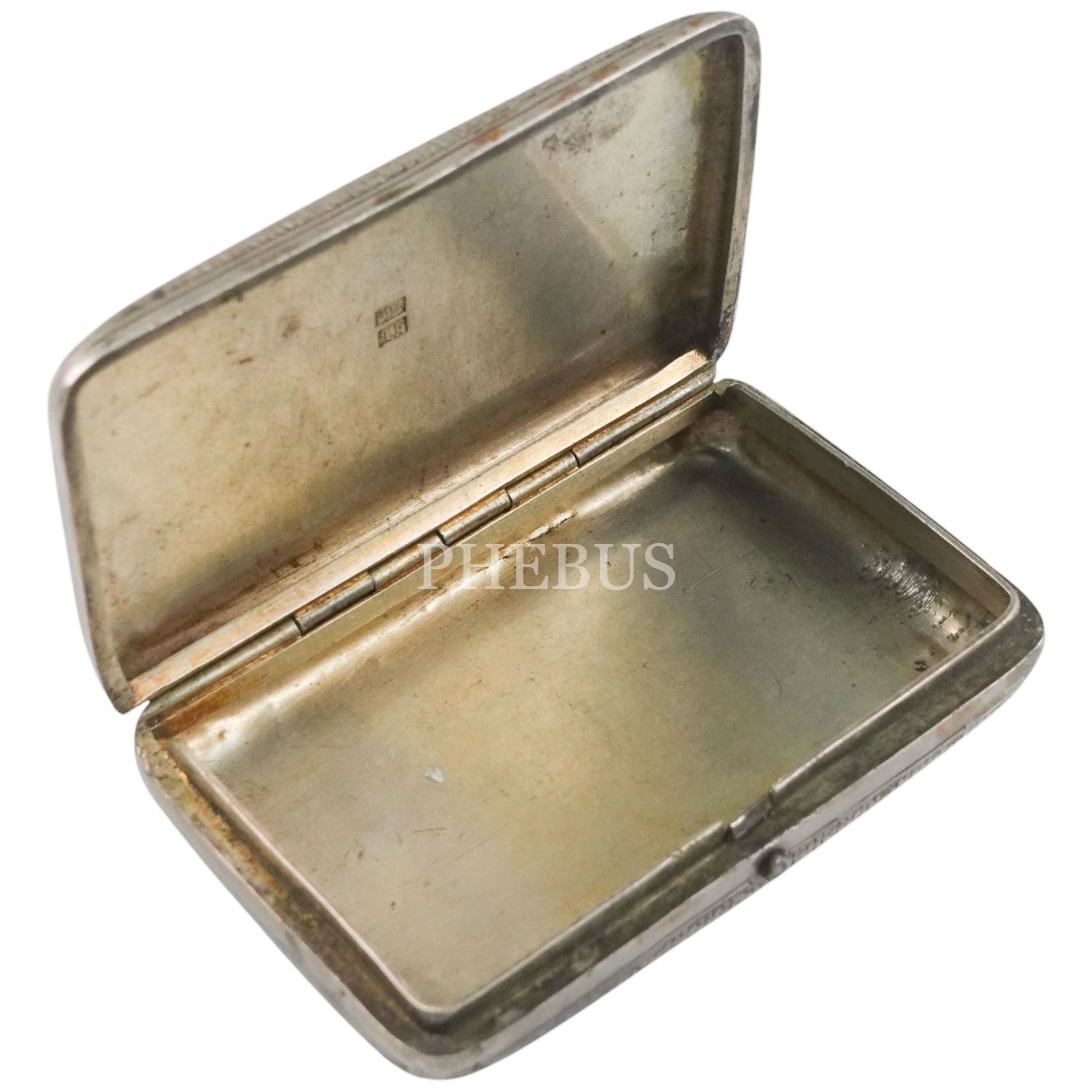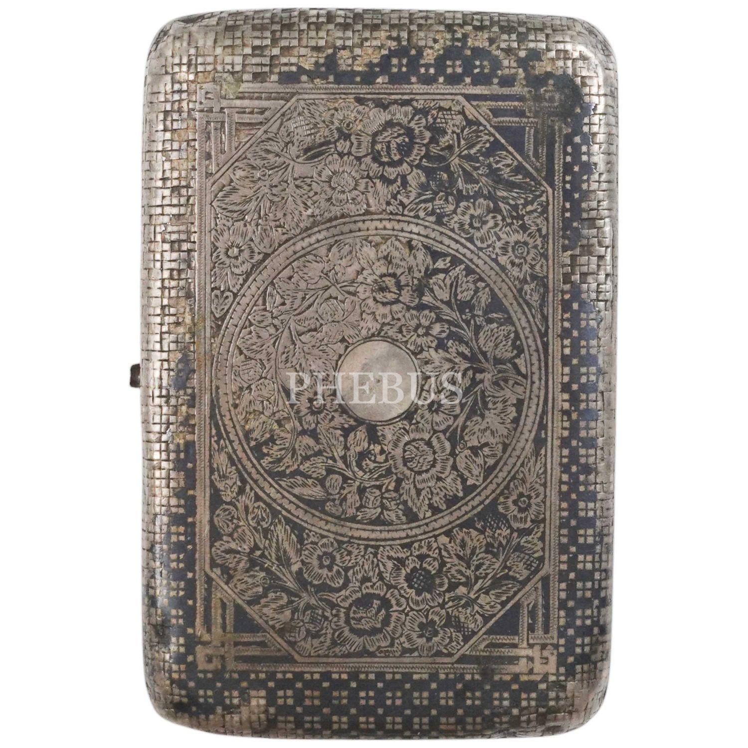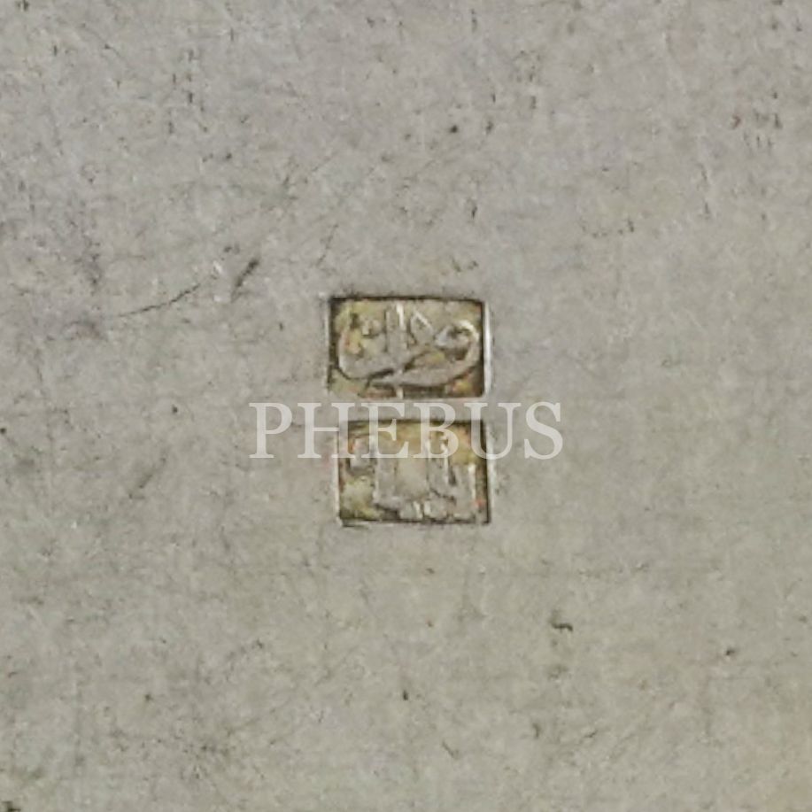 Kalem ve savat işçiliğiyle Osmanlı Devlet Arması ve floral desenlerle bezenmiş, Osmanlıca ve Ermenice "Van" damgalı gümüş tabaka, 113 gr, 9x6 cm...