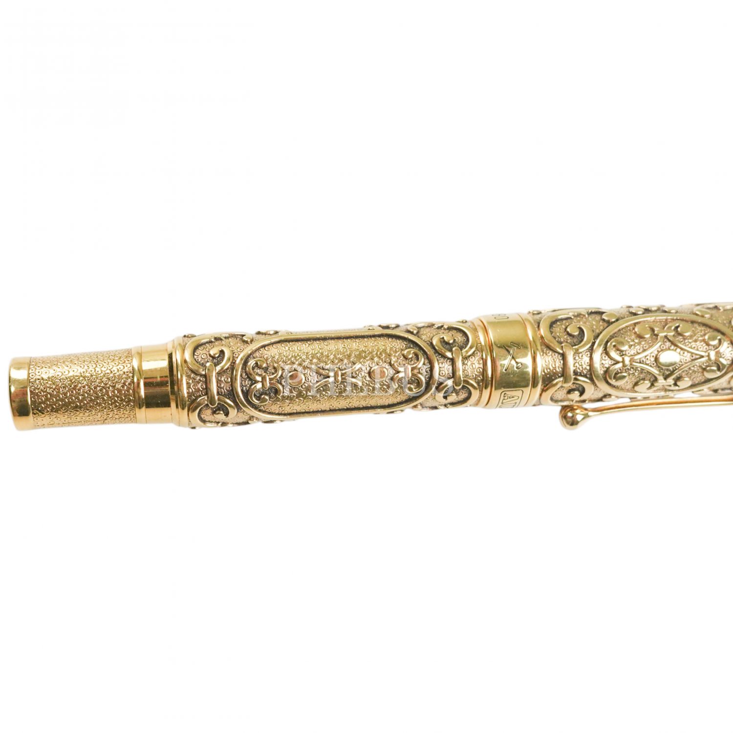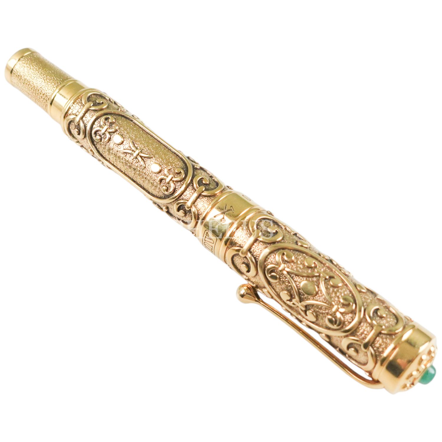 *Aynı modelin gümüş ve altın vermeil olanları da mevcuttur. Rönesans motifleriyle bezeli piston mekanizmalı kalem 18 ayar altın medium uca sahip olup limitli üretim seri numarası 99/80´dir.