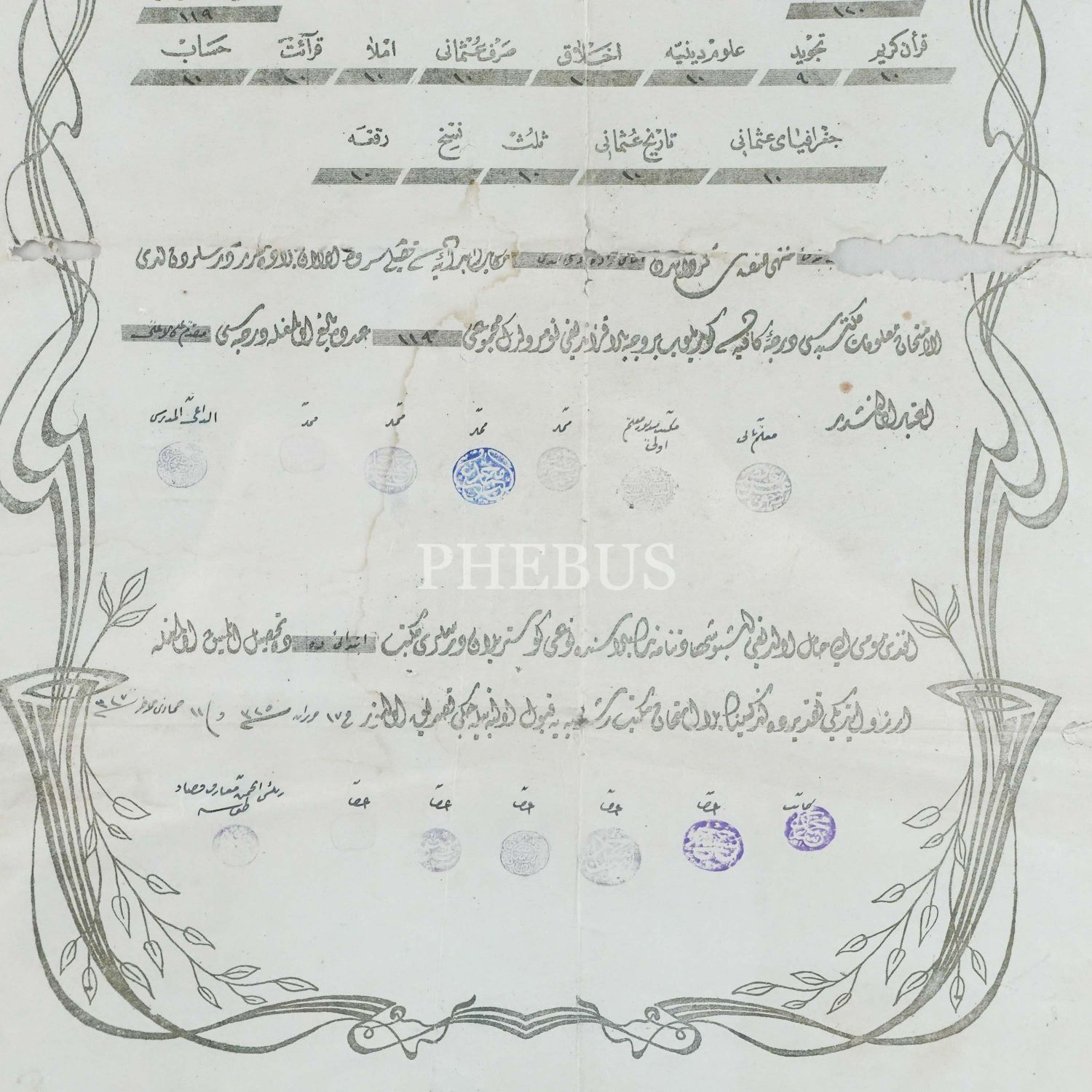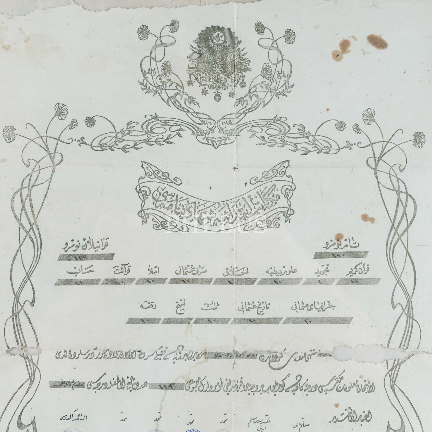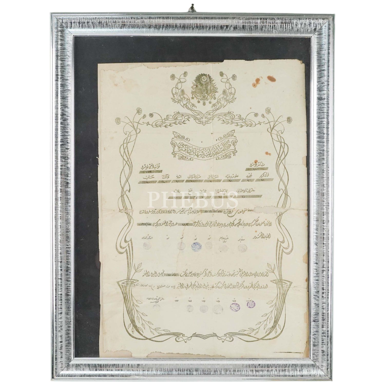 Samizade Veli Efendi´nin, 1327 tarihli Mektep-i İptidaiye diploması, diploma 35x50 cm, çerçeve 46x60 cm...