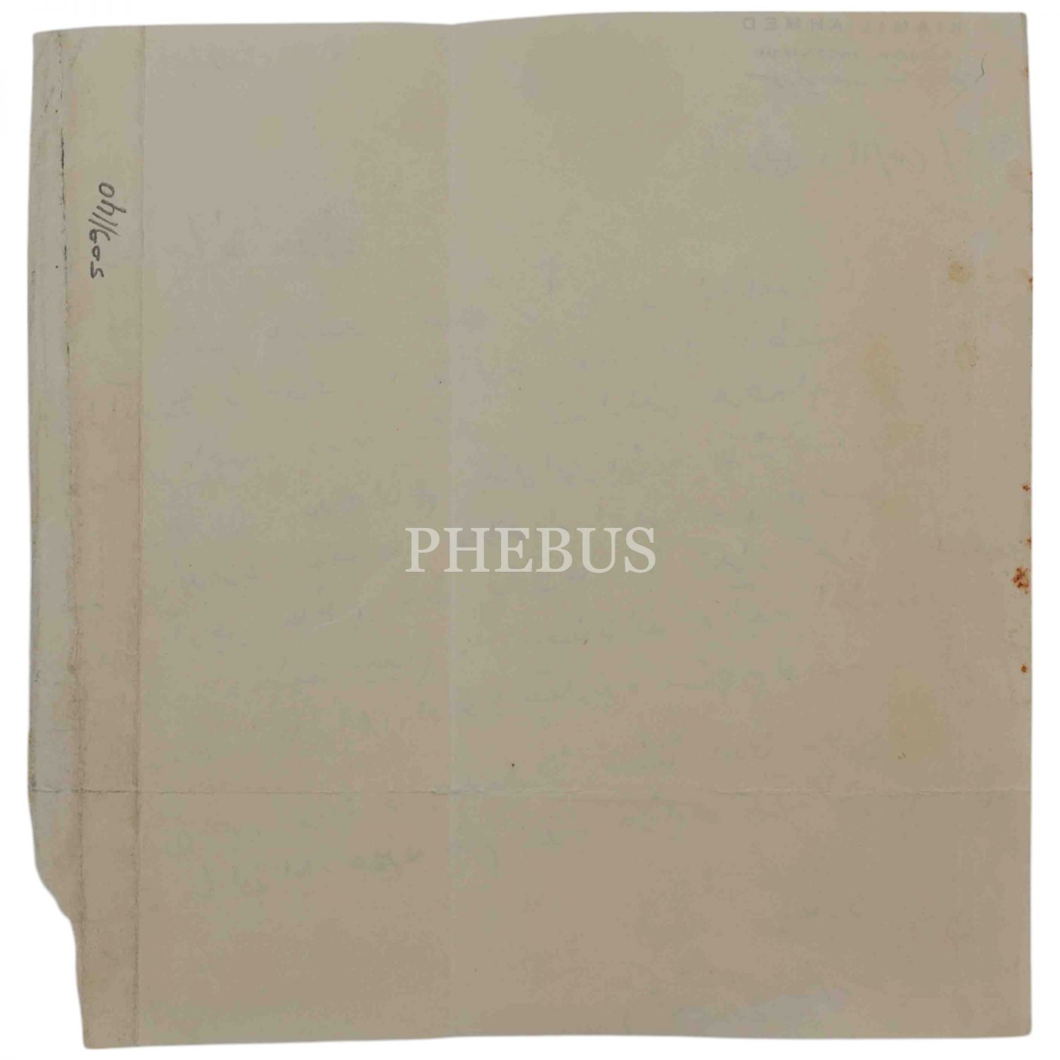 Enver Paşa´nın şehadetinden sonra vasiyeti üzerine eşi Naciye Sultan ile evlenen kardeşi Kamil Killigil´in, ıslak imzasını taşıyan 18 Kasım 1953 tarihli mektubu, 17x17 cm...