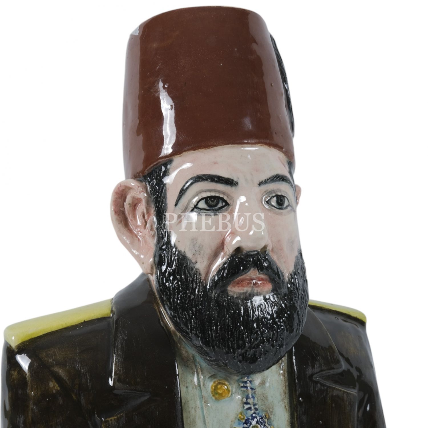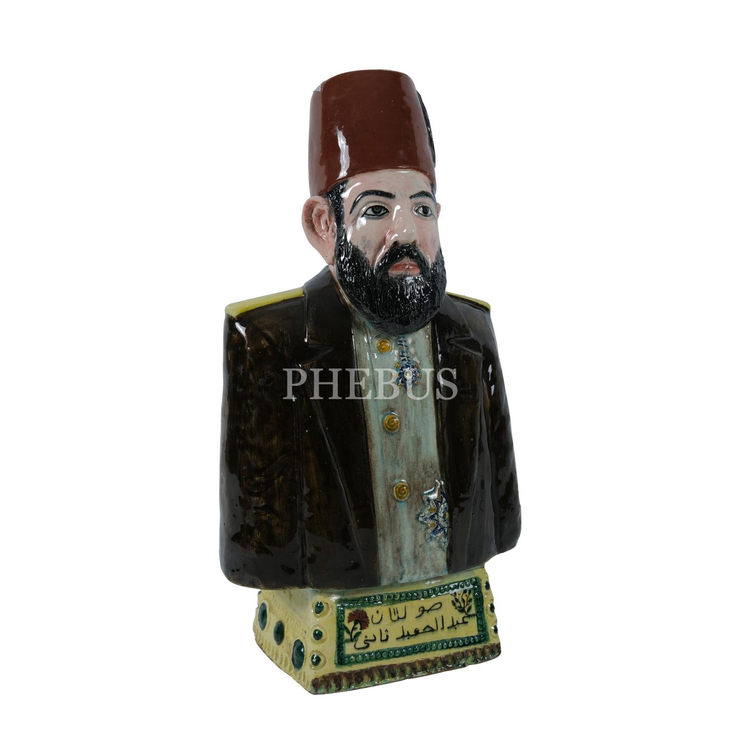 Sultan İkinci Abdülhamid´in tasvir edildiği, kaidesinde "Sultan Abdülhamid-i Sanî" yazılı, "Ömer" imzalı seramik büst, yükseklik 43 cm, genişlik 24 cm...