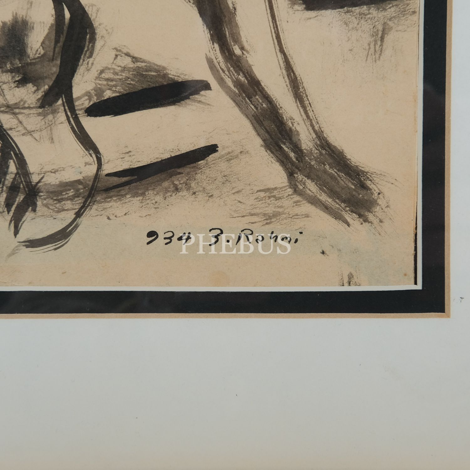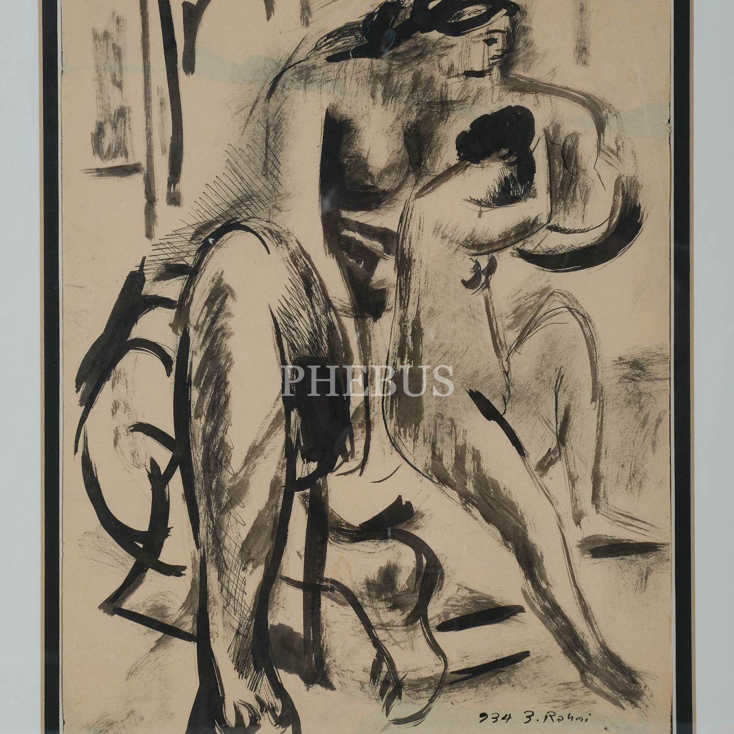Bedri Rahmi Eyüboğlu´ndan ıslak imzalı, kağıt üzeri orijinal çizim, 1934, resim 28x22 cm, çerçeve 42x36 cm...