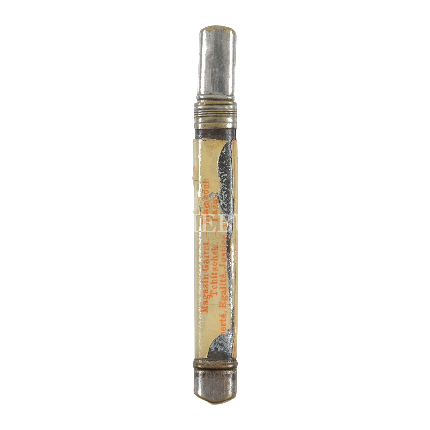 İstanbul Çiçek Pazarı´nda faaliyet gösteren "Gayret Mağazası" reklamlı, II. Meşrutiyet´in sloganı haline gelmiş "Adalet, Musavat, Hürriyet" kelimeleri ve II. Meşrutiyet´in ilan tarihi "11 Temmuz 1324" tarihinin Osmanlıca ve Fransızca yazılı olduğu II. Meşrutiyet temalı kalem, 1x9 cm..