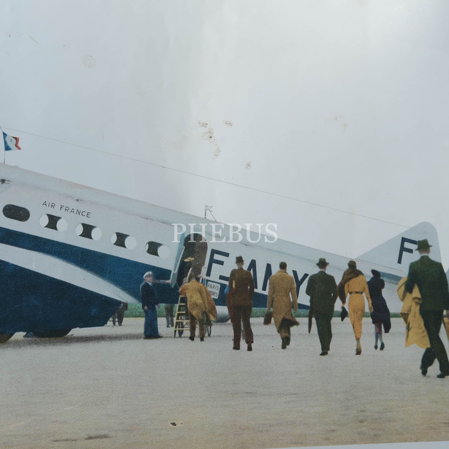 1933 tarihinde kurulan Fransa´nın bayrak taşıyıcı havayolu şirketi Air France´ın, uçağa binmekte olan yolcuların görseline yer verdiği camaltı tabelası, 32x24 cm...
