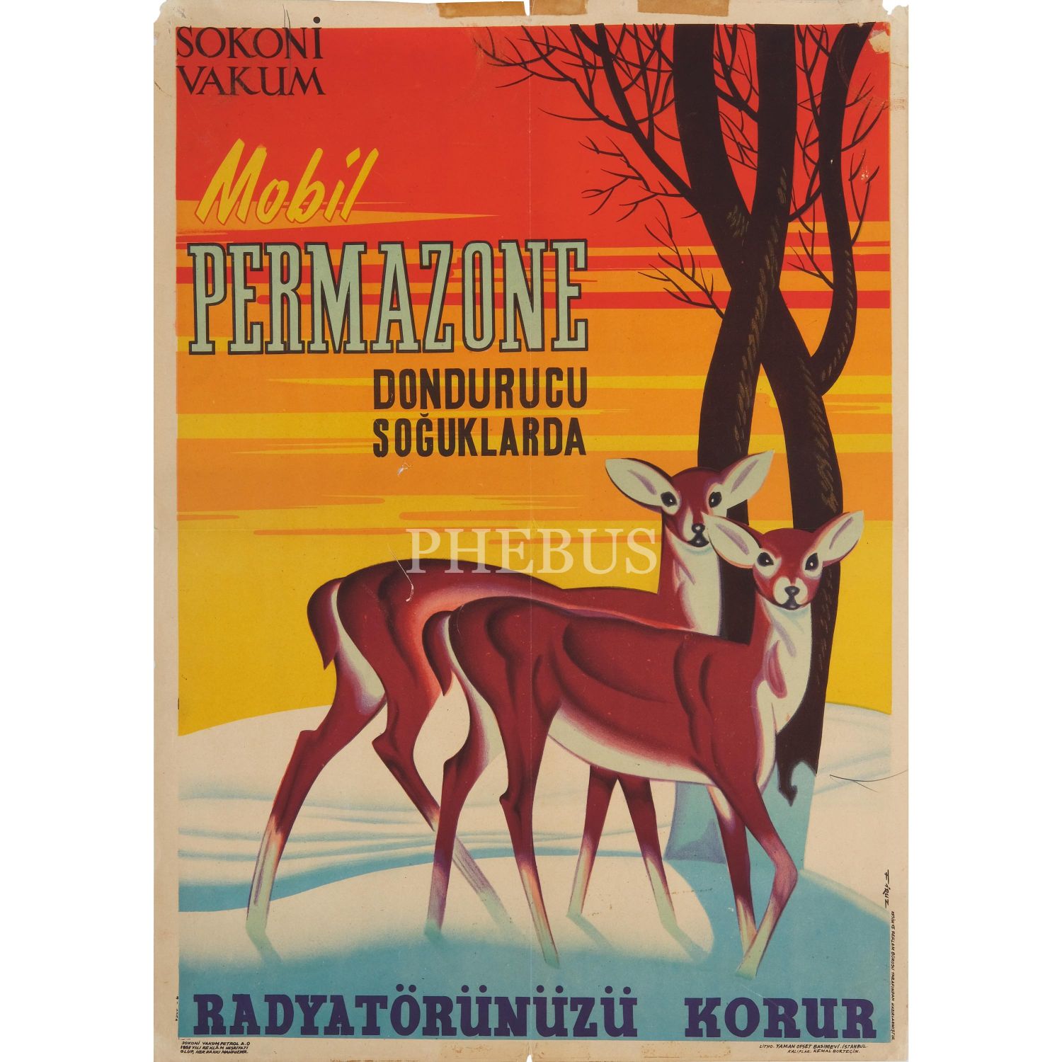 Firuz Aşkın tasarımı, "Mobil Permazone dondurucu soğuklarda radyatörünüzü korur" yazılı afiş, 50x70 cm...