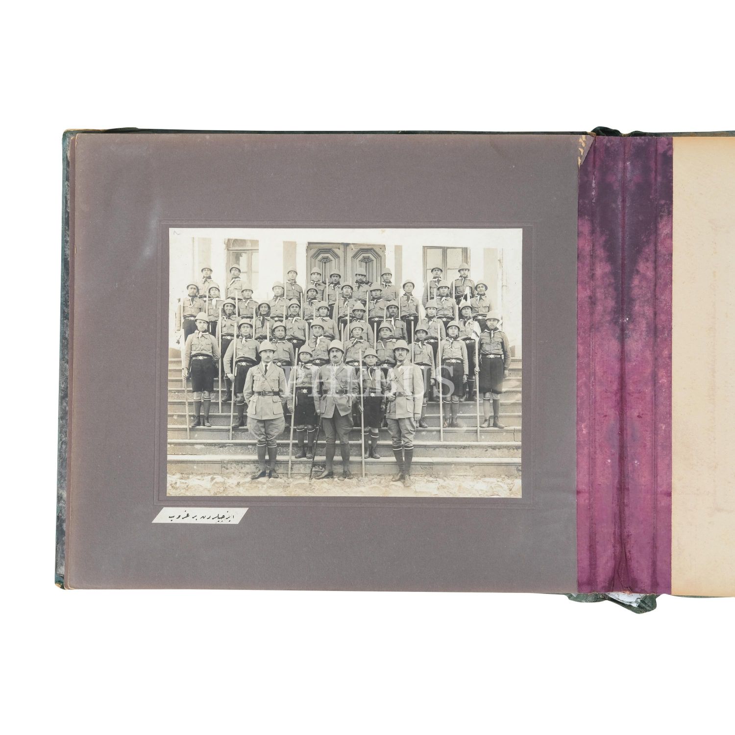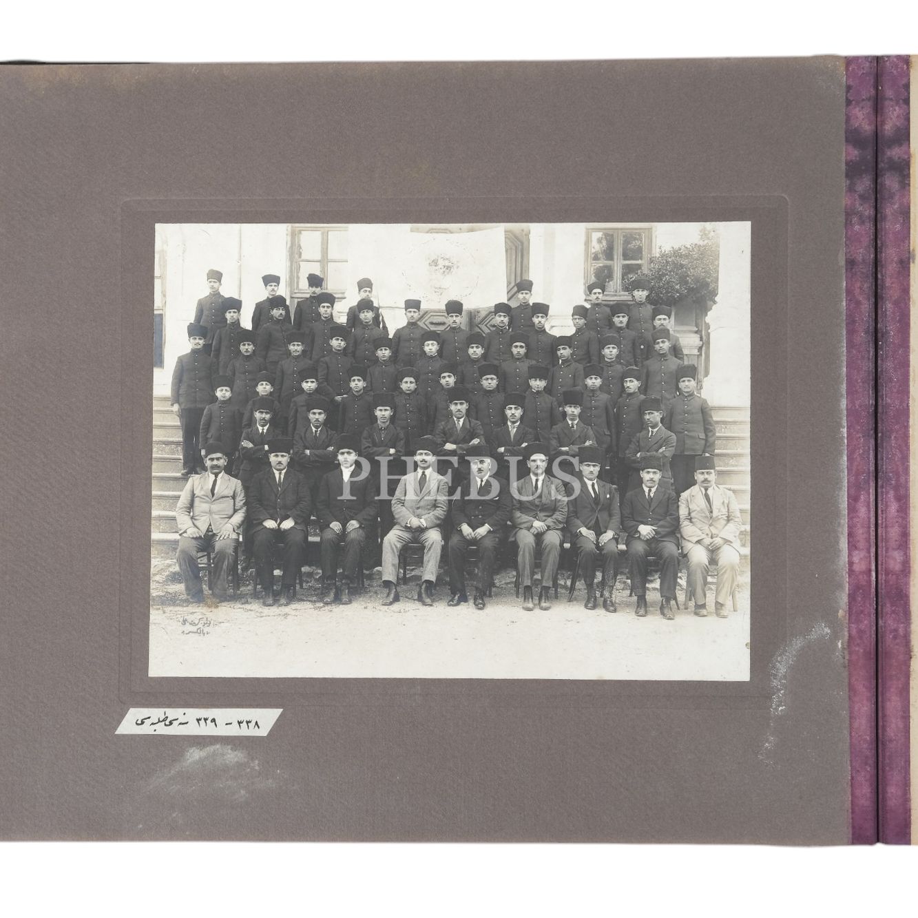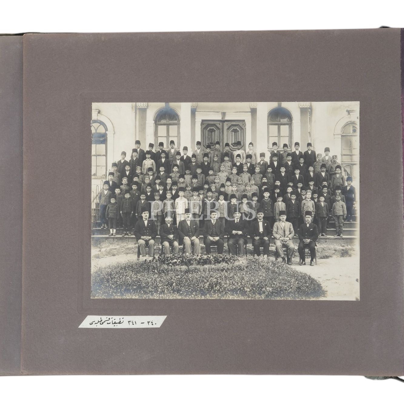 Karesi (Balıkesir) Erkek Muallim Mektebi´nin; Osmanlı´nın son dönemi ve Cumhuriyet´in ilk dönemlerinde alınmış 1922 ilâ 1925 senesi arasında okulda eğitim görmüş öğrencilerin, okulun izci grubunun ve okulun iç ile dış kısımlarından 13 adet fotoğraf içeren albüm, 35x30 cm...
