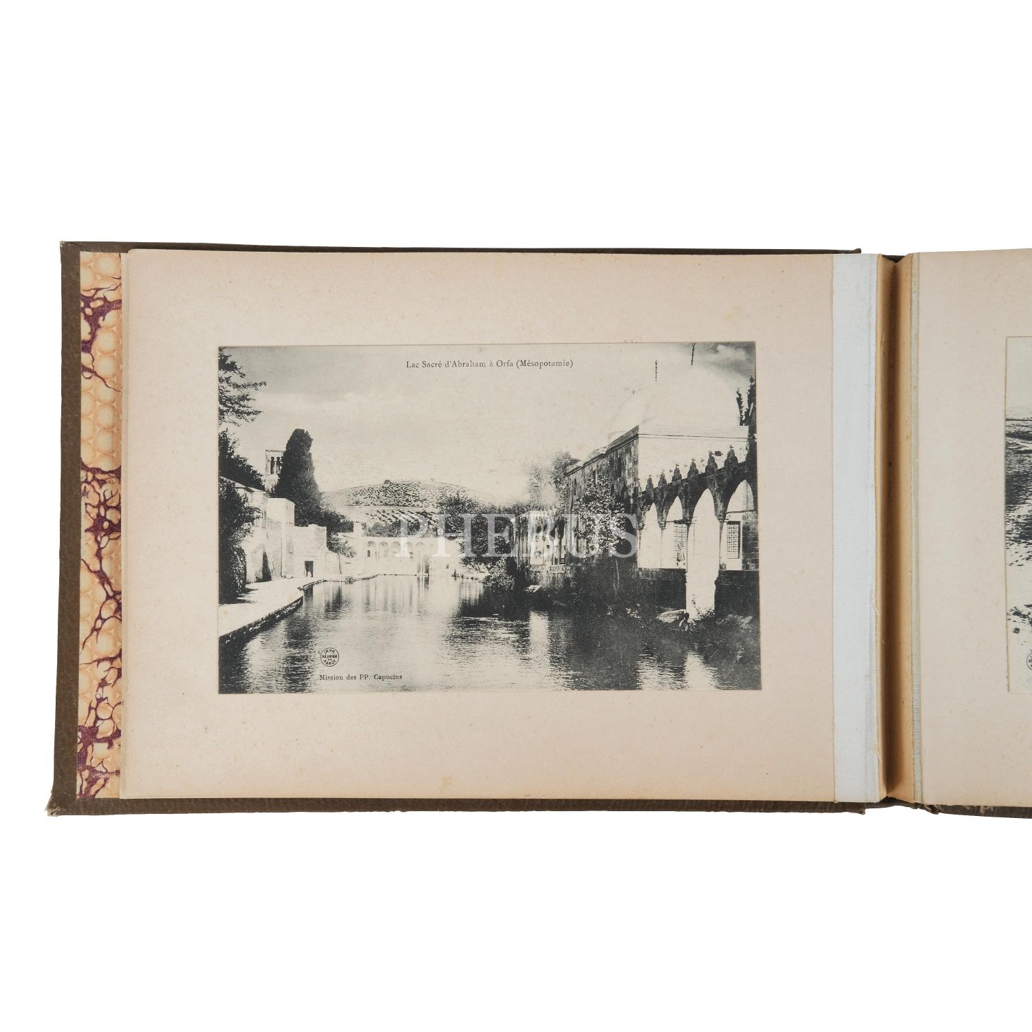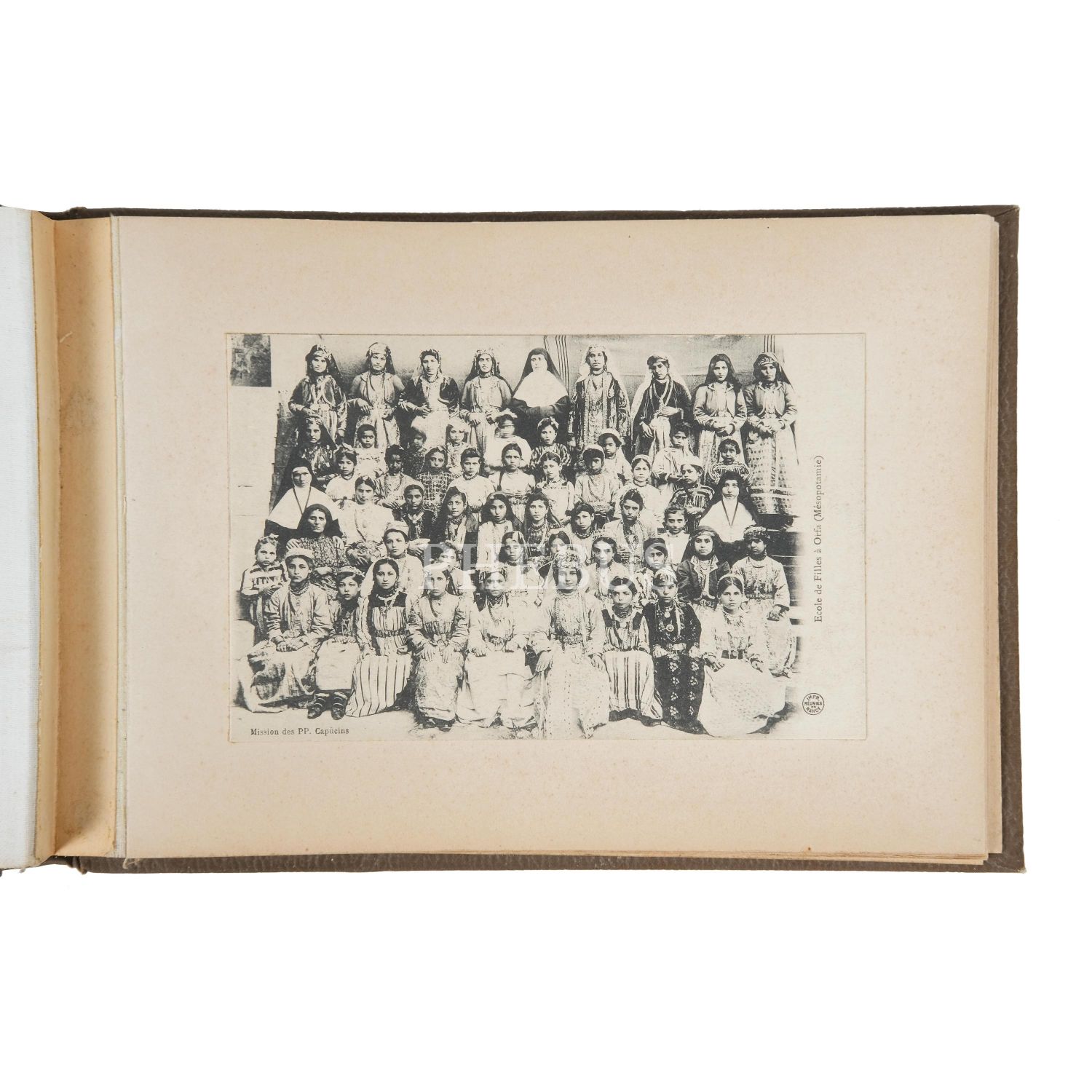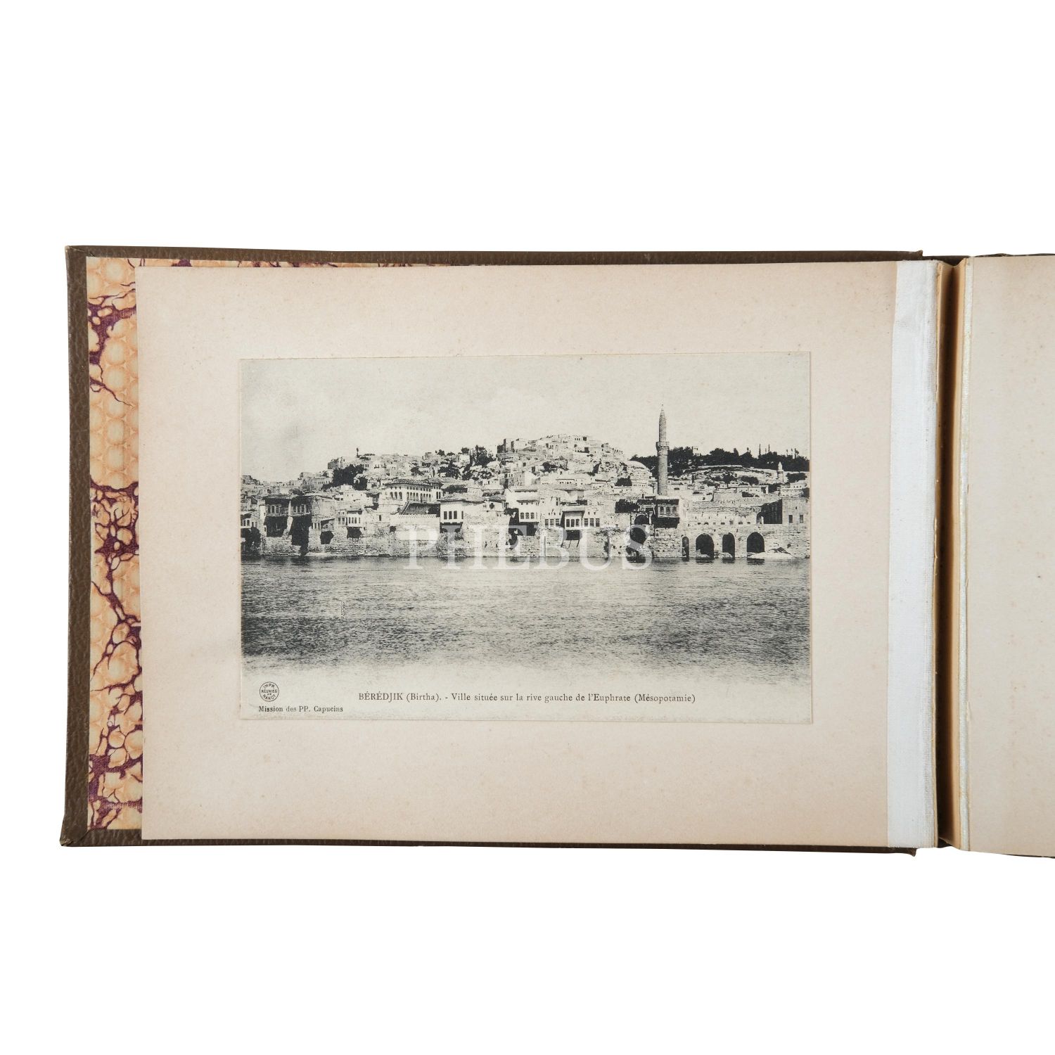 Mezopotamya coğrafyasında yaşayan Ermeniler´in yaşantısından ve yerleşim yerlerinden görüntüler içeren 22 adet kartpostaldan meydana gelen "Souvenir de Mesopotamie et d´Armenie" başlıklı albüm, editör: Mission des P.P. Capucins, 22x14 cm...