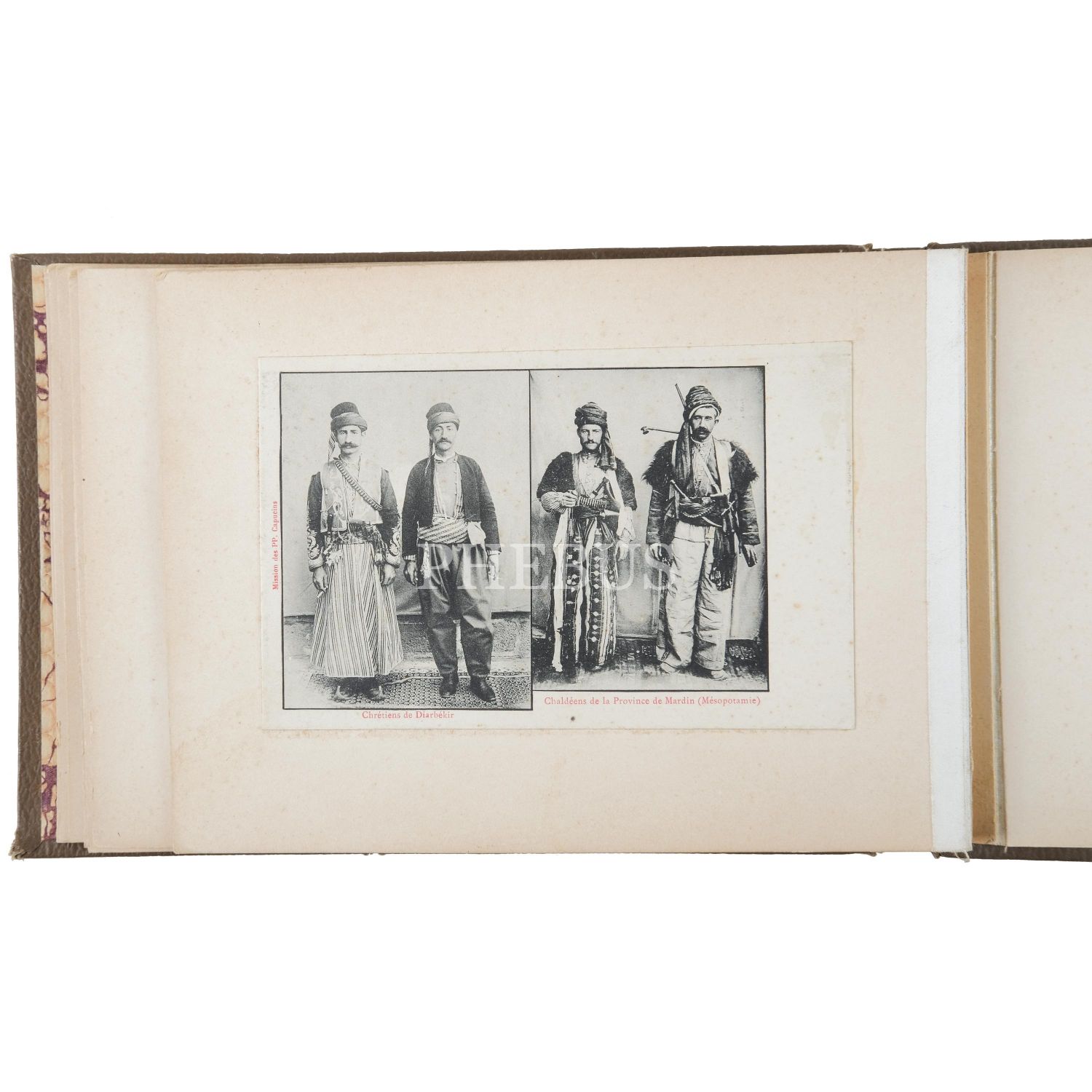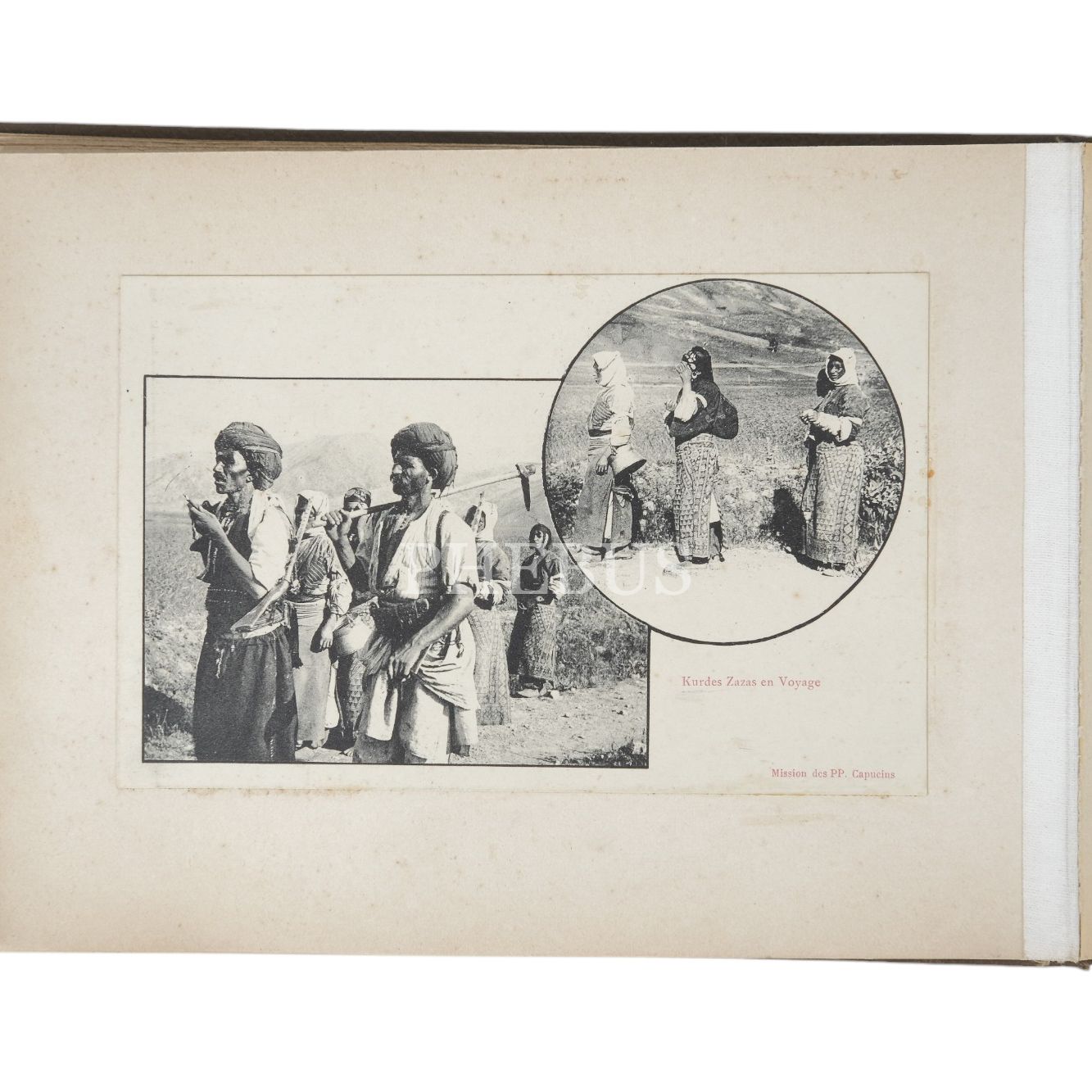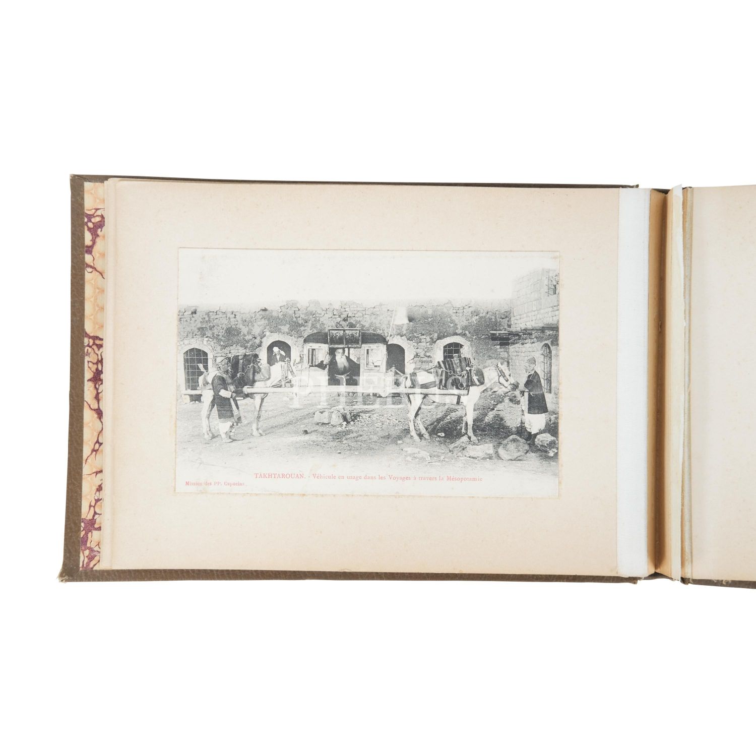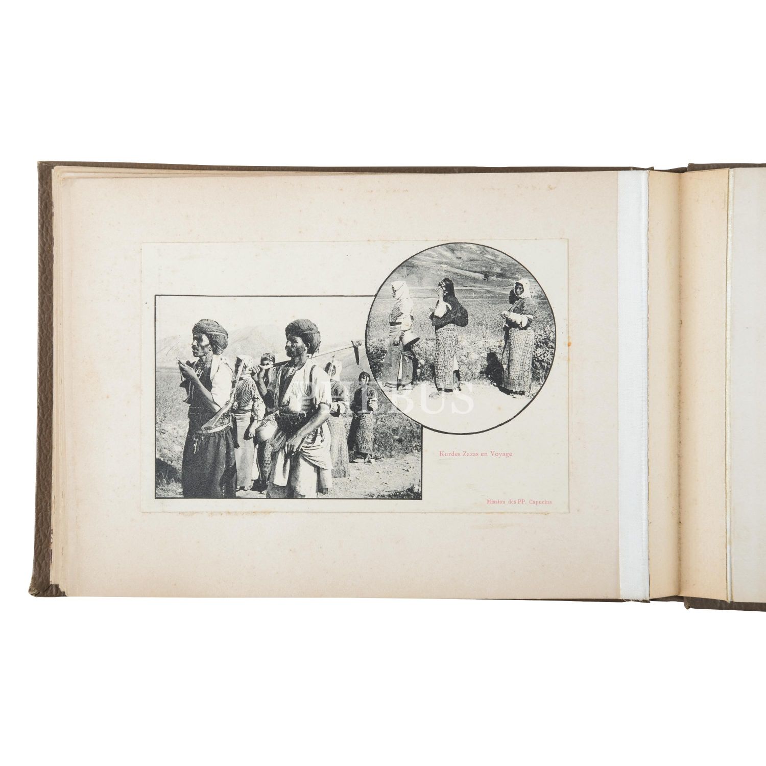 Mezopotamya coğrafyasında yaşayan Ermeniler´in yaşantısından ve yerleşim yerlerinden görüntüler içeren 22 adet kartpostaldan meydana gelen "Souvenir de Mesopotamie et d´Armenie" başlıklı albüm, editör: Mission des P.P. Capucins, 22x14 cm...