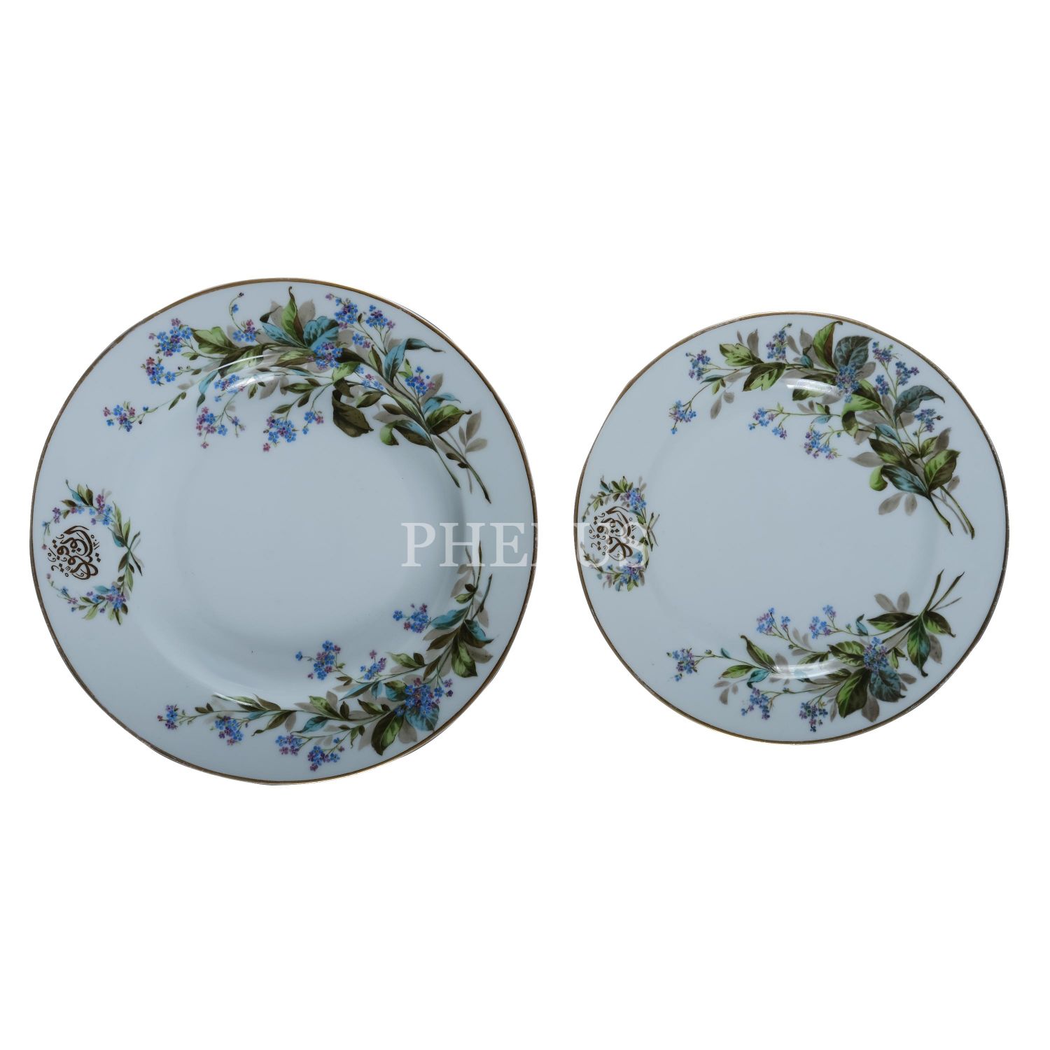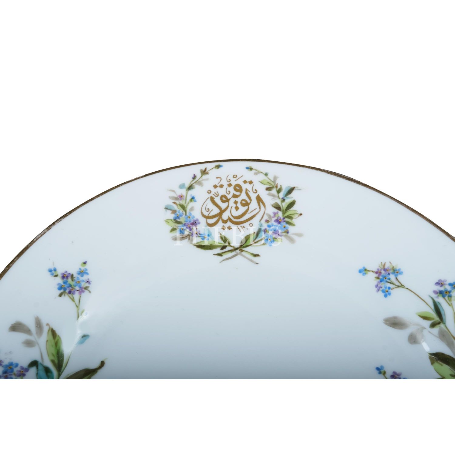 El boyama çiçek motifleriyle bezeli, "Es-Seyid Tevfik - 1305" yazılı iki adet porselen tabak, büyük tabağın çapı 24 cm, küçük tabağın çapı 20 cm...