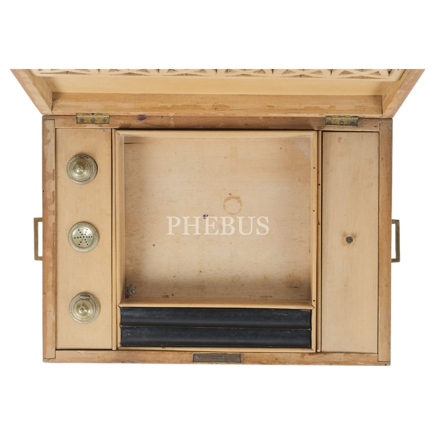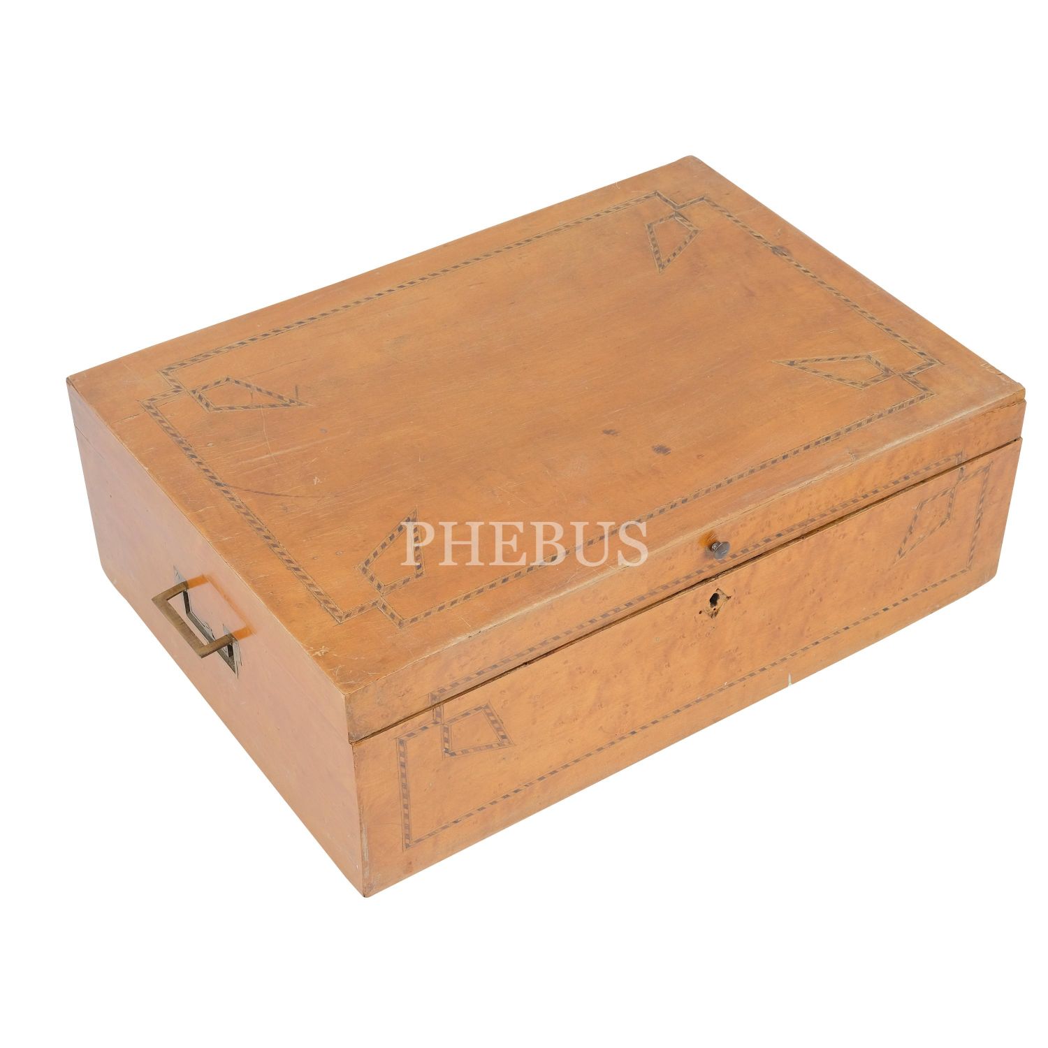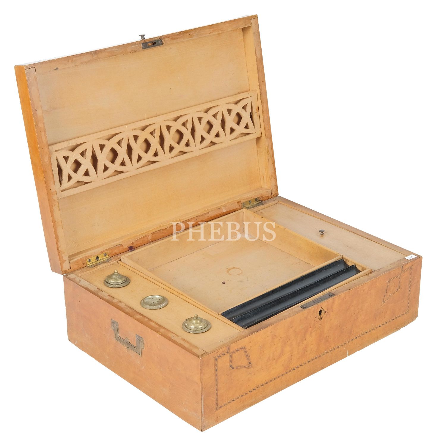 Osmanlı Hattat Sandığı, içinde çekmeceleri, kalemlik, 2 adet hokka ve rıhdanı ile beraber, ölçü: 48x34x16 cm...
