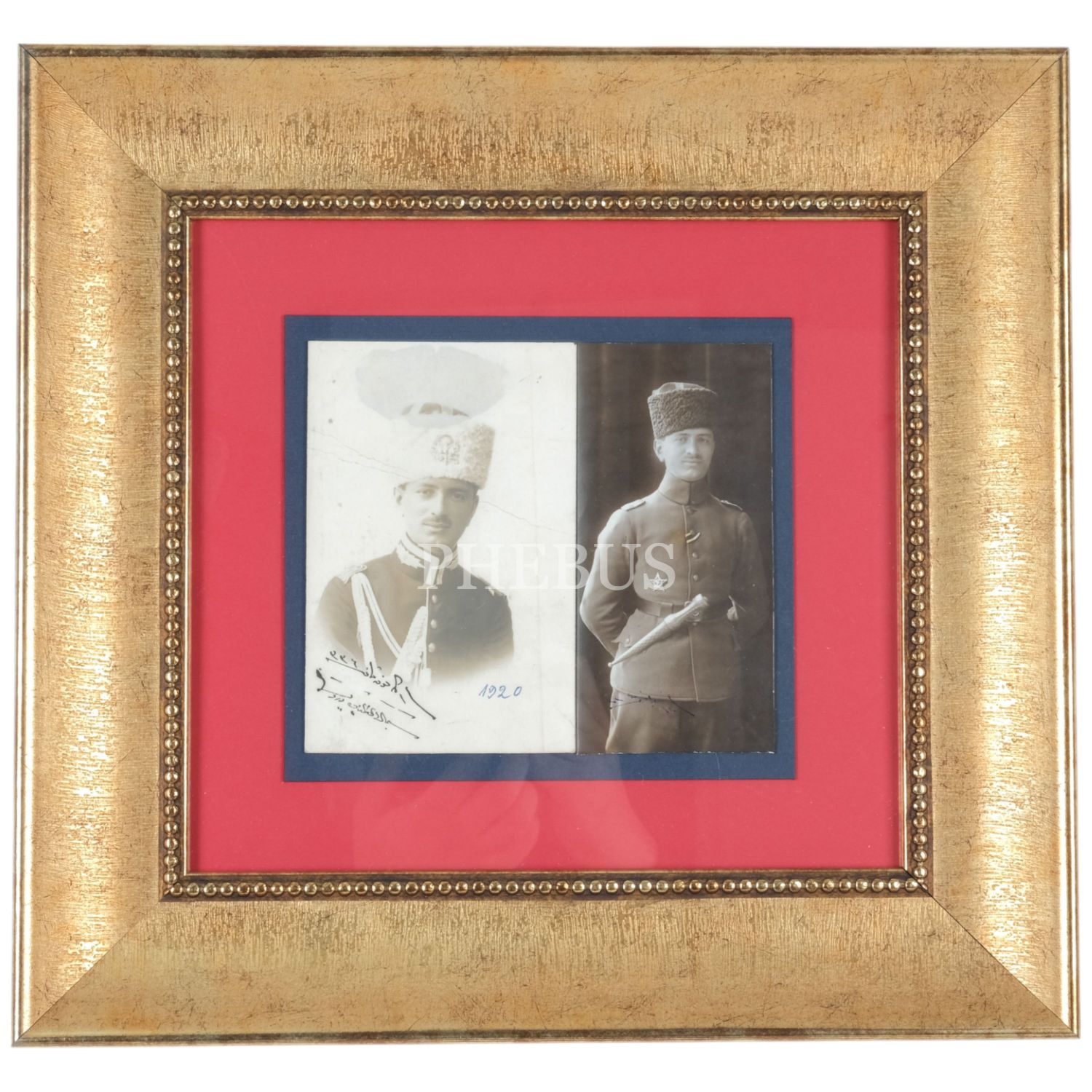 Türk tayyarecilik tarihinde gerçekleştirdiği ilkler ve başarıları ile adını yazdırmış Tayyareci Kemal Bey´in kardeşi Cemalettin Derviş Bey´den biri imzalı iki adet hatıra fotoğrafı, fotoğraflar 14x15 cm, çerçeve 31x32 cm...
