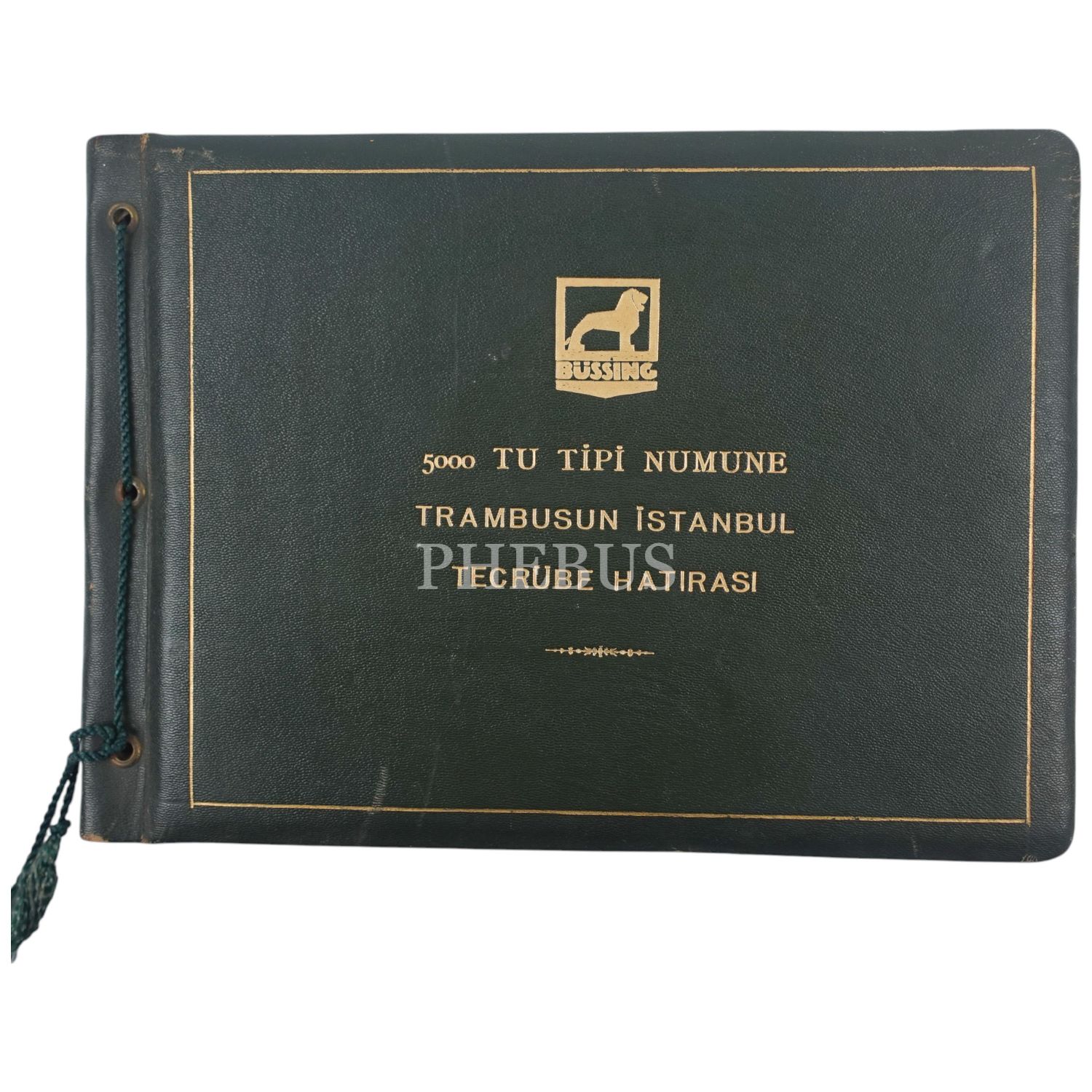 Alman Otobüs firması BÜSSING´in İstanbul´a numune olarak gönderdiği 5000 TU model otobüsün, İstanbul´un tarihi mekanlarında ve boğaza nazır sokaklarında çekilmiş fotoğraflarından oluşan "5000 Tu Tipi Numune Trambusun İstanbul Tecrübe Hatırası" başlıklı albüm, 22 adet fotoğraf, albüm 34x24 cm, fotoğraflar 24x18 cm...