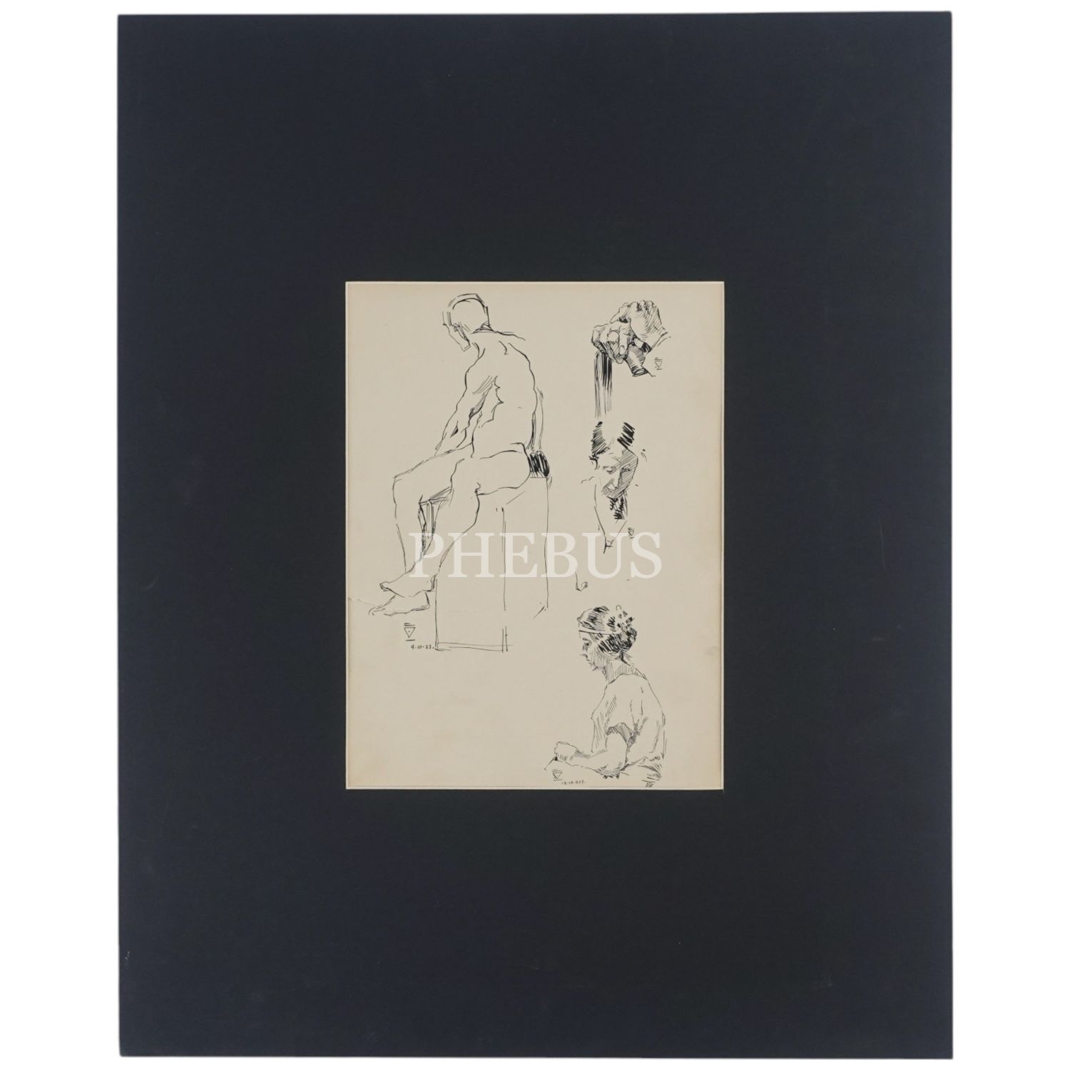 İhap Hulusi´nin 1922 ve 1923 senelerinde çizdiği, meşhur üçgen imzasını taşıyan 3 adet orijinal eskiz, eskizler 24x30 cm...