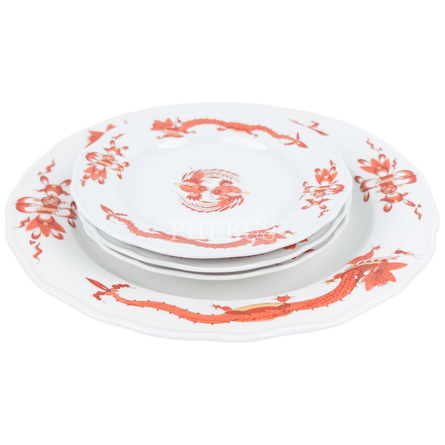 Üzerleri el boyama ejderha ve horoz görseli işlemeli, Sevr tabak seti (4 parça) küçük tabaklar çap 16 cm, büyük tap çap 25 cm...